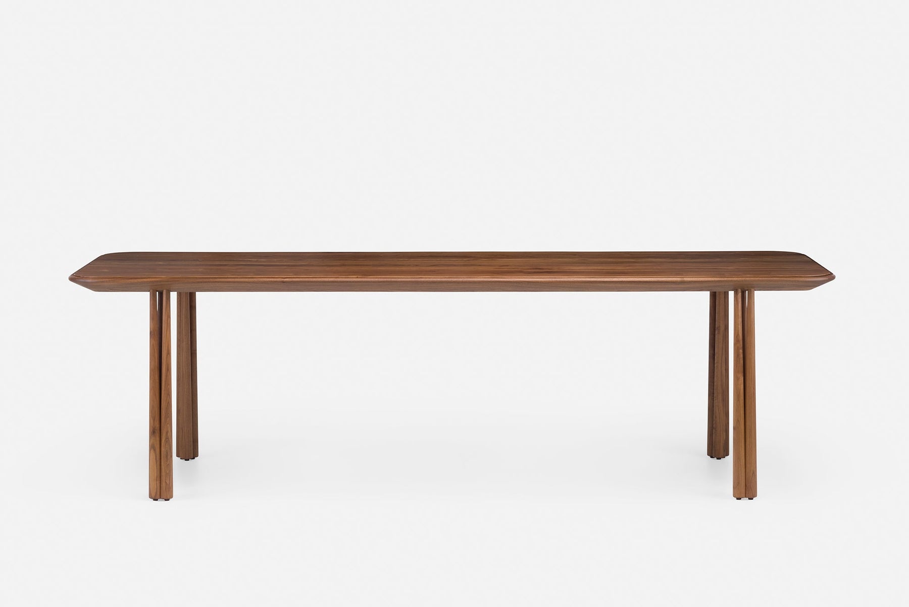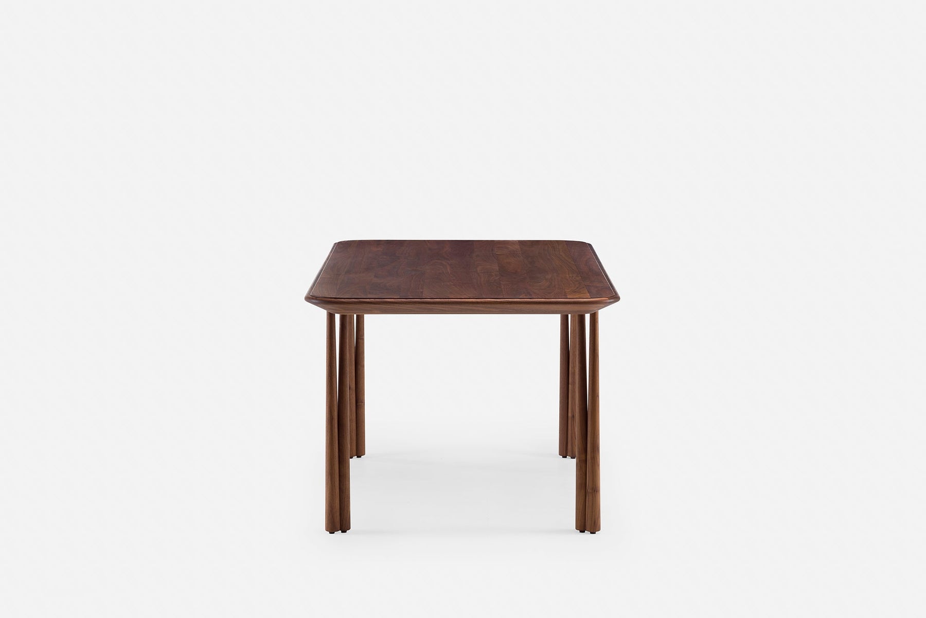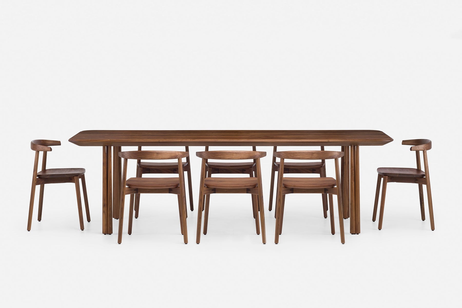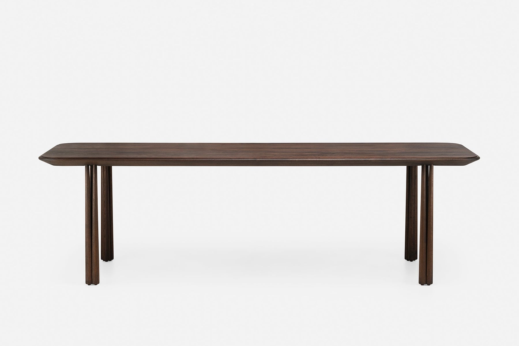 Elliot is an intricately detailed table that harnesses De La Espada’s woodworking expertise in a form that captures the sumptuous qualities of a traditional American aesthetic in a more modern design language. It is available with a rectangular or oblong tabletop in a variety of sizes. Part of a family of furniture that includes a dining chair, desk, and dressing table.