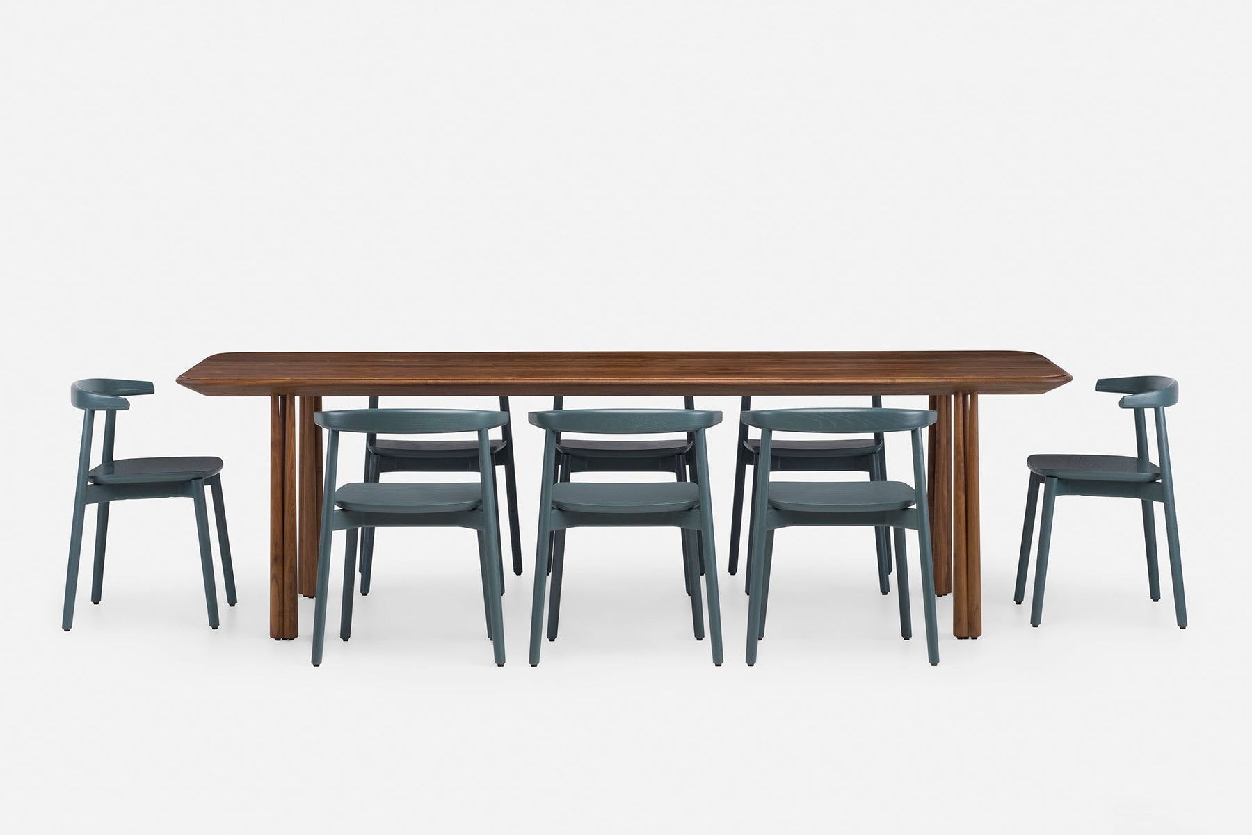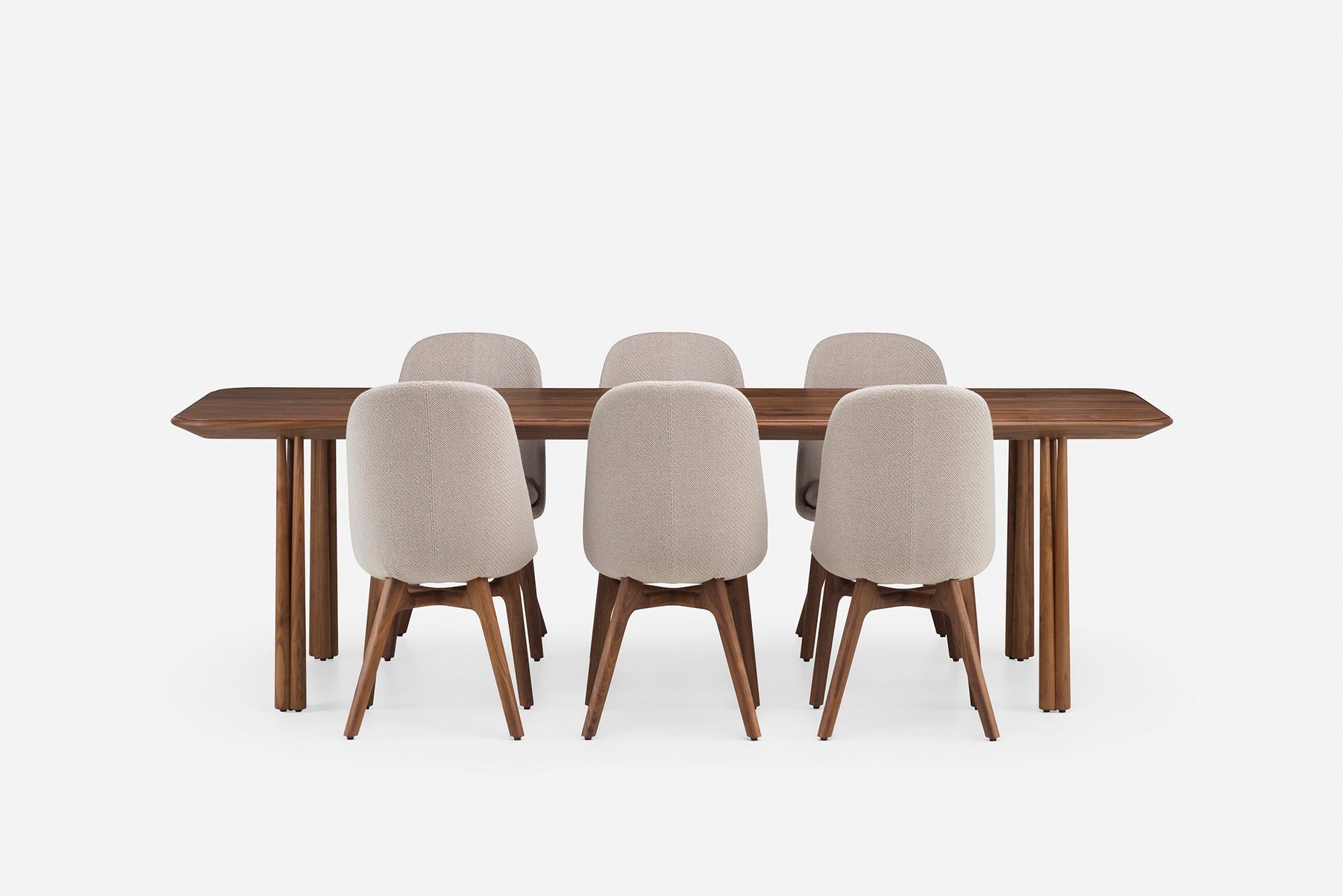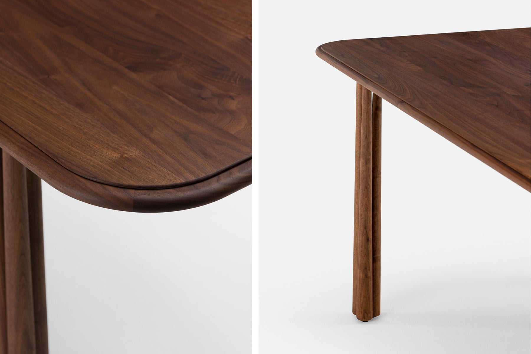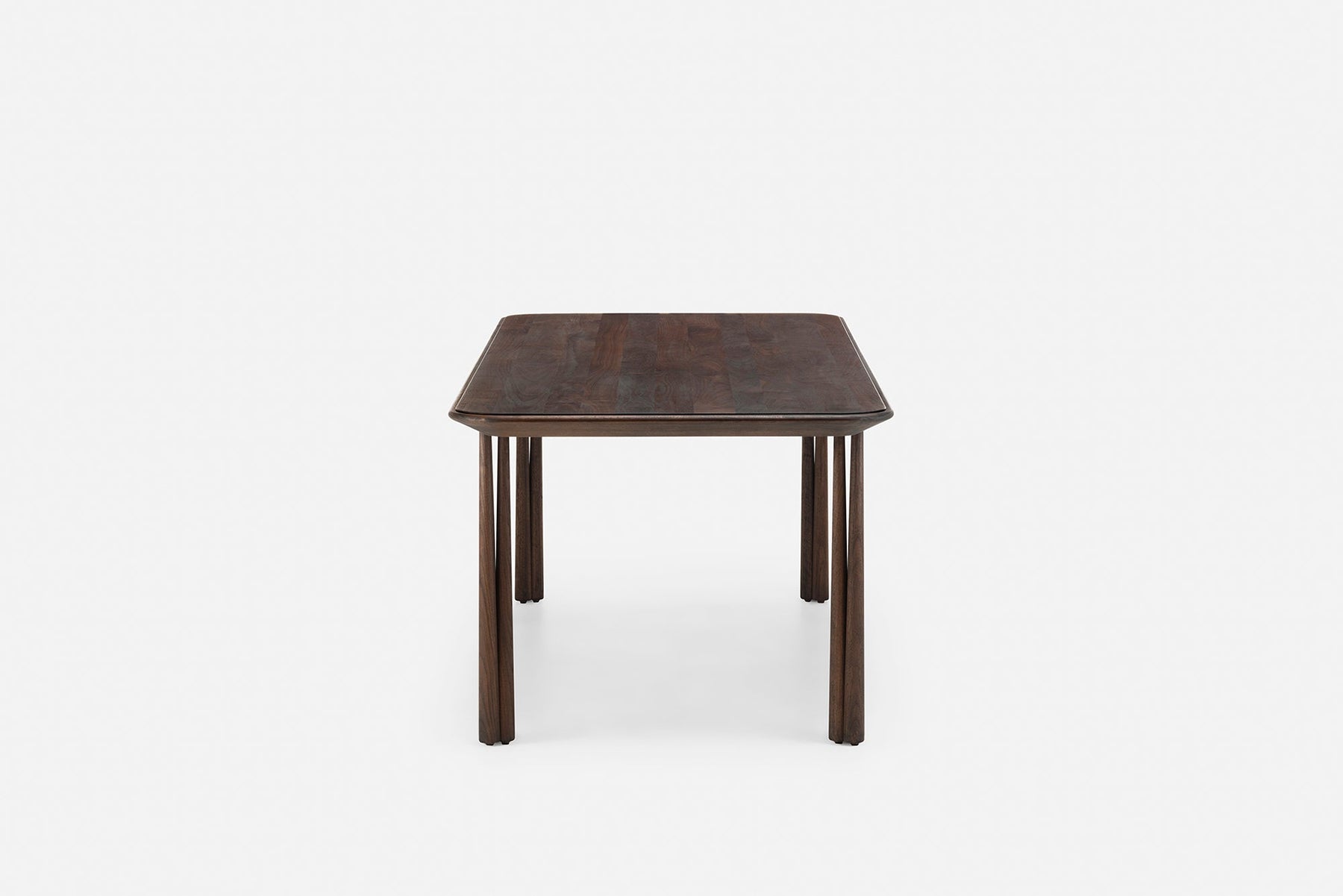 Elliot is an intricately detailed table that harnesses De La Espada’s woodworking expertise in a form that captures the sumptuous qualities of a traditional American aesthetic in a more modern design language. It is available with a rectangular or oblong tabletop in a variety of sizes. Part of a family of furniture that includes a dining chair, desk, and dressing table.