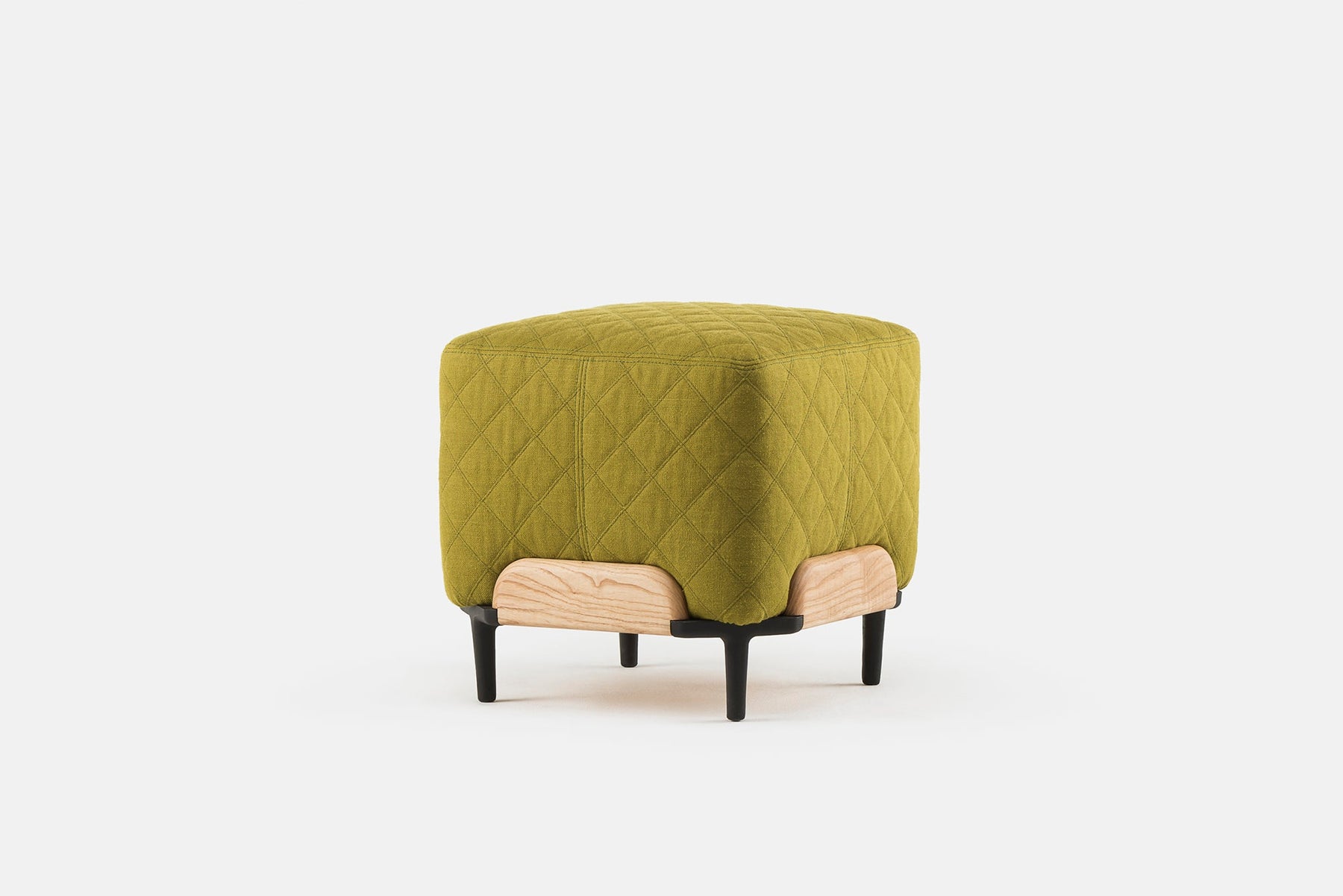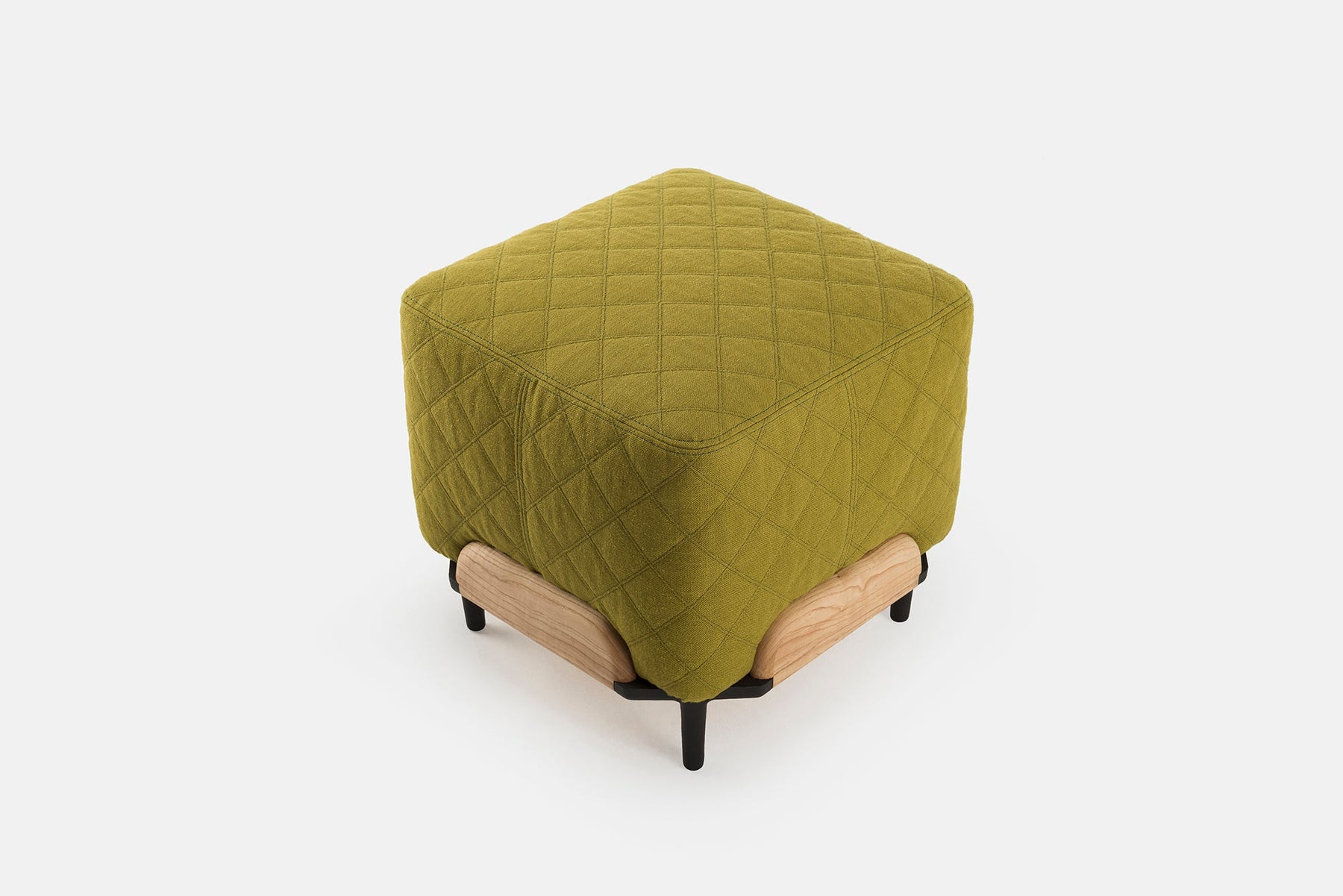 Gemstones set into jewellery were the starting point for Steve, a series of upholstered poufs by Luca Nichetto. Steve features short cast iron legs that support a visible wooden structure crowned with upholstery. Available in two sizes.