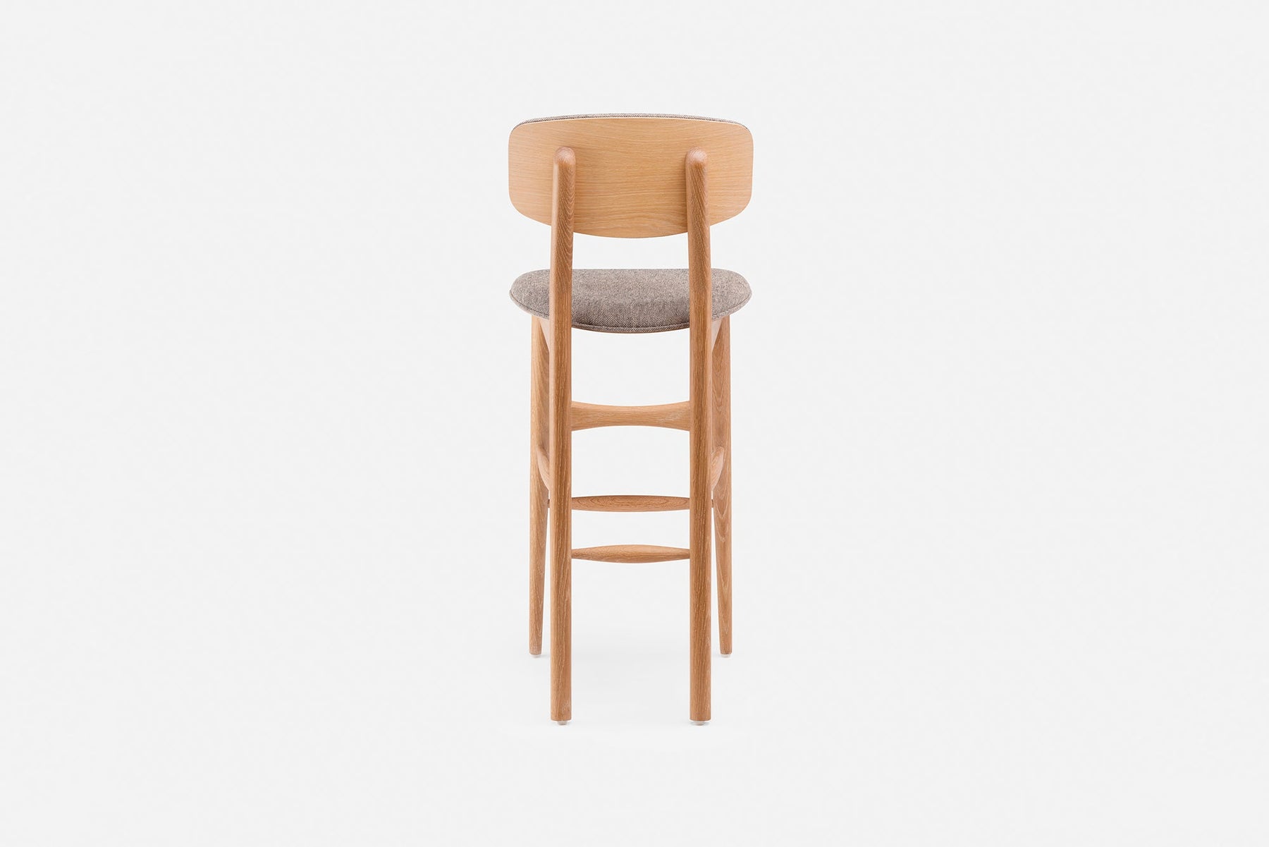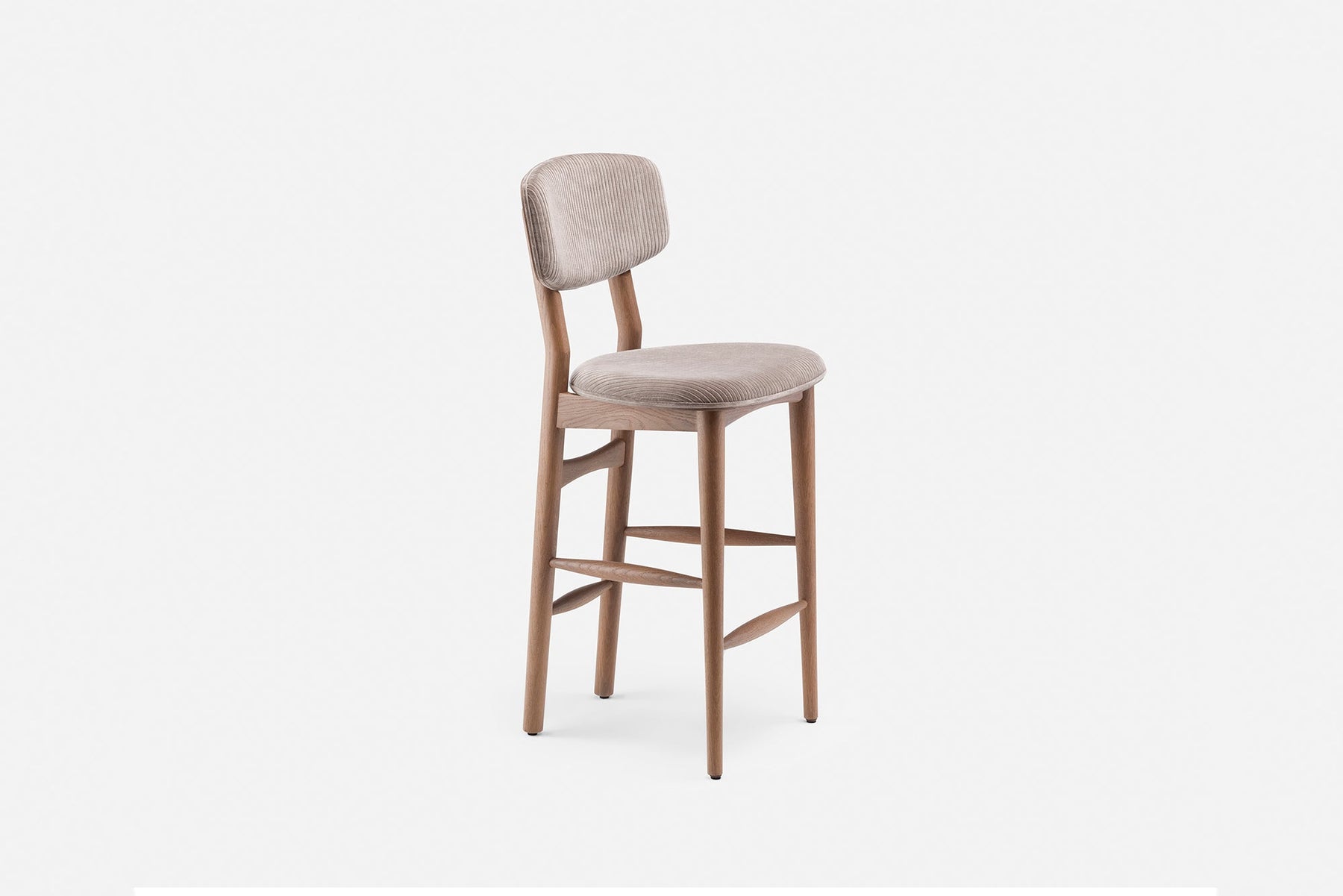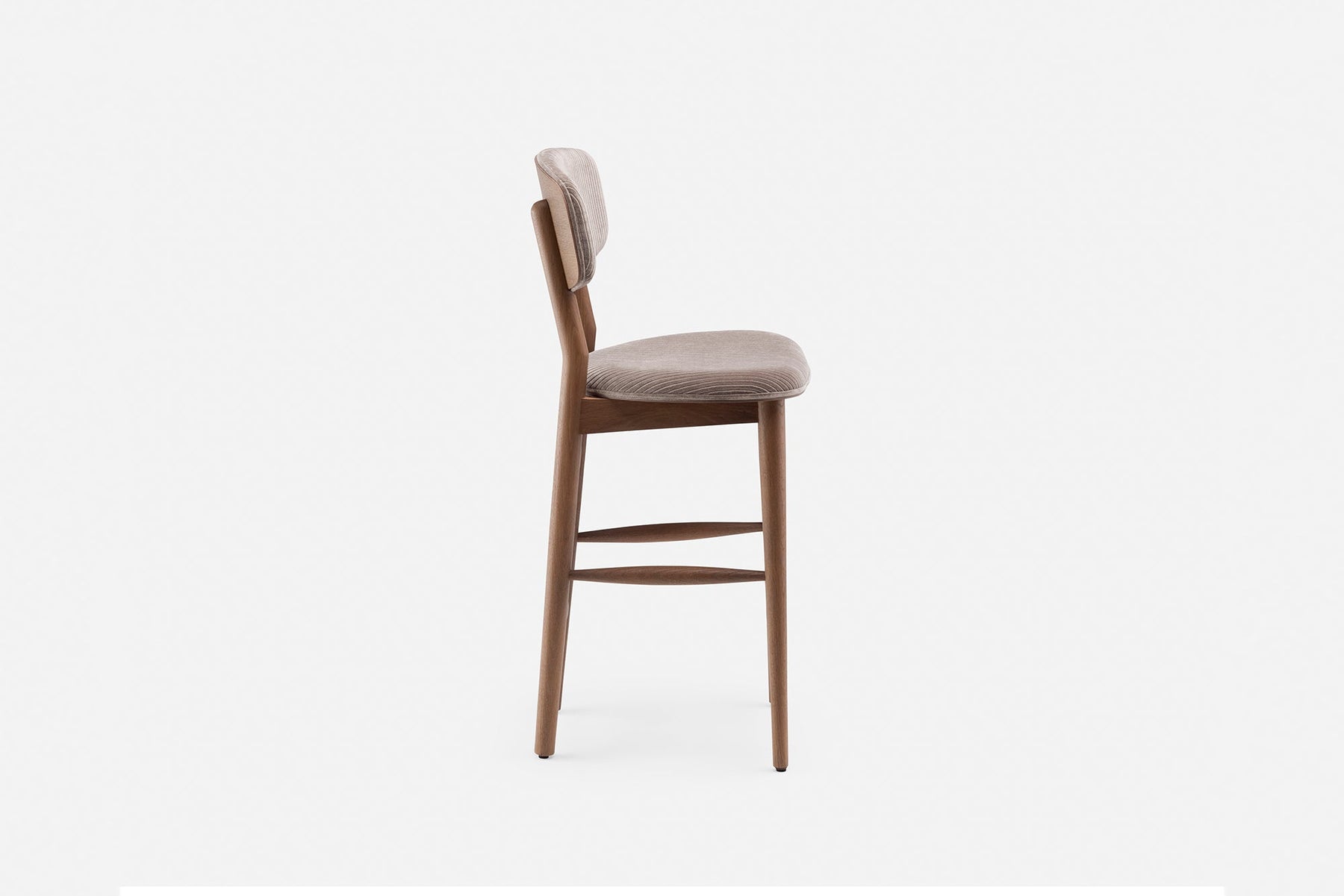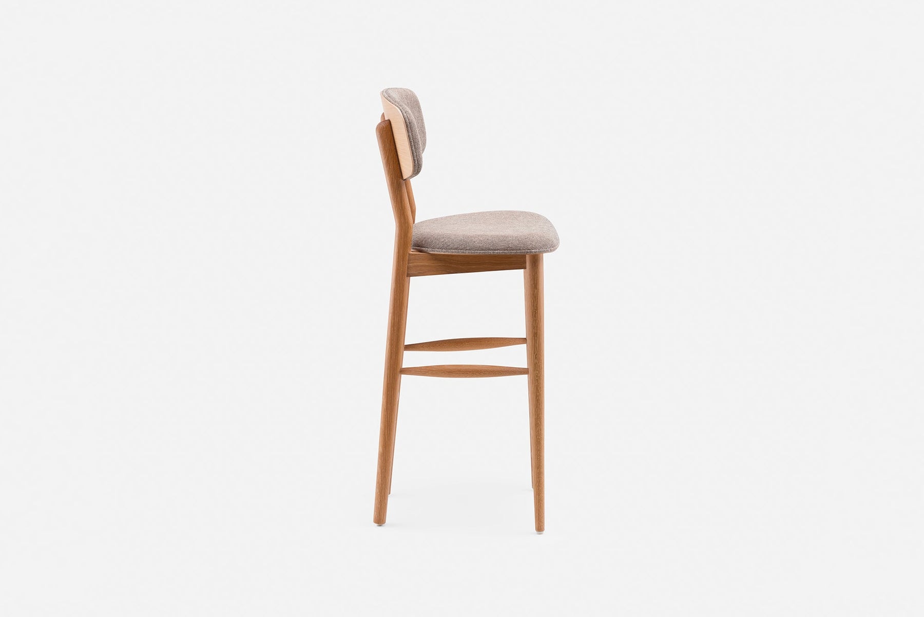 Butterfly is a comfortable and understated bar stool with a timber backrest that recalls the wings of its namesake. With its refined upholstery on the seat and backrest and robust timber frame, it is suitable for a variety of environments.