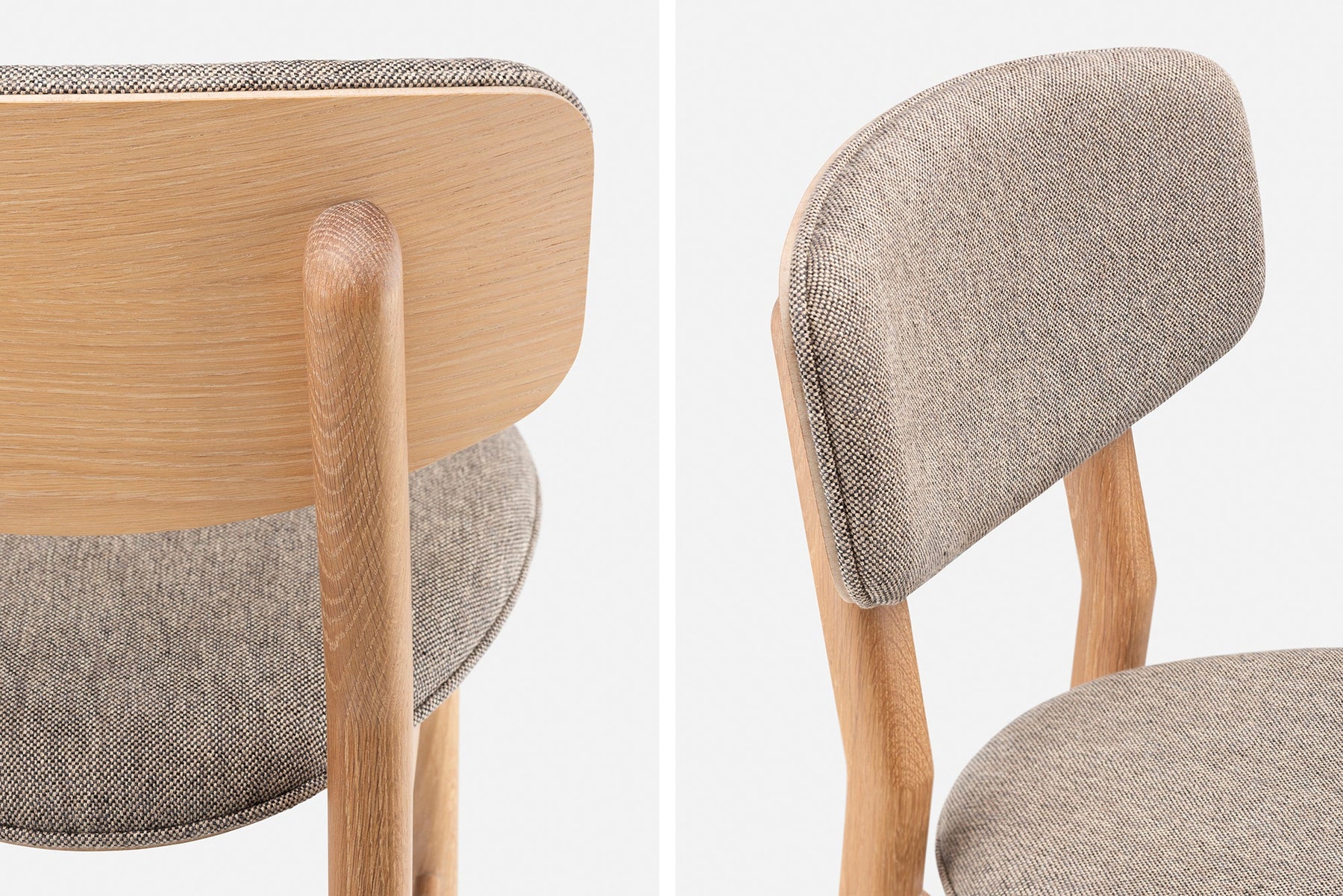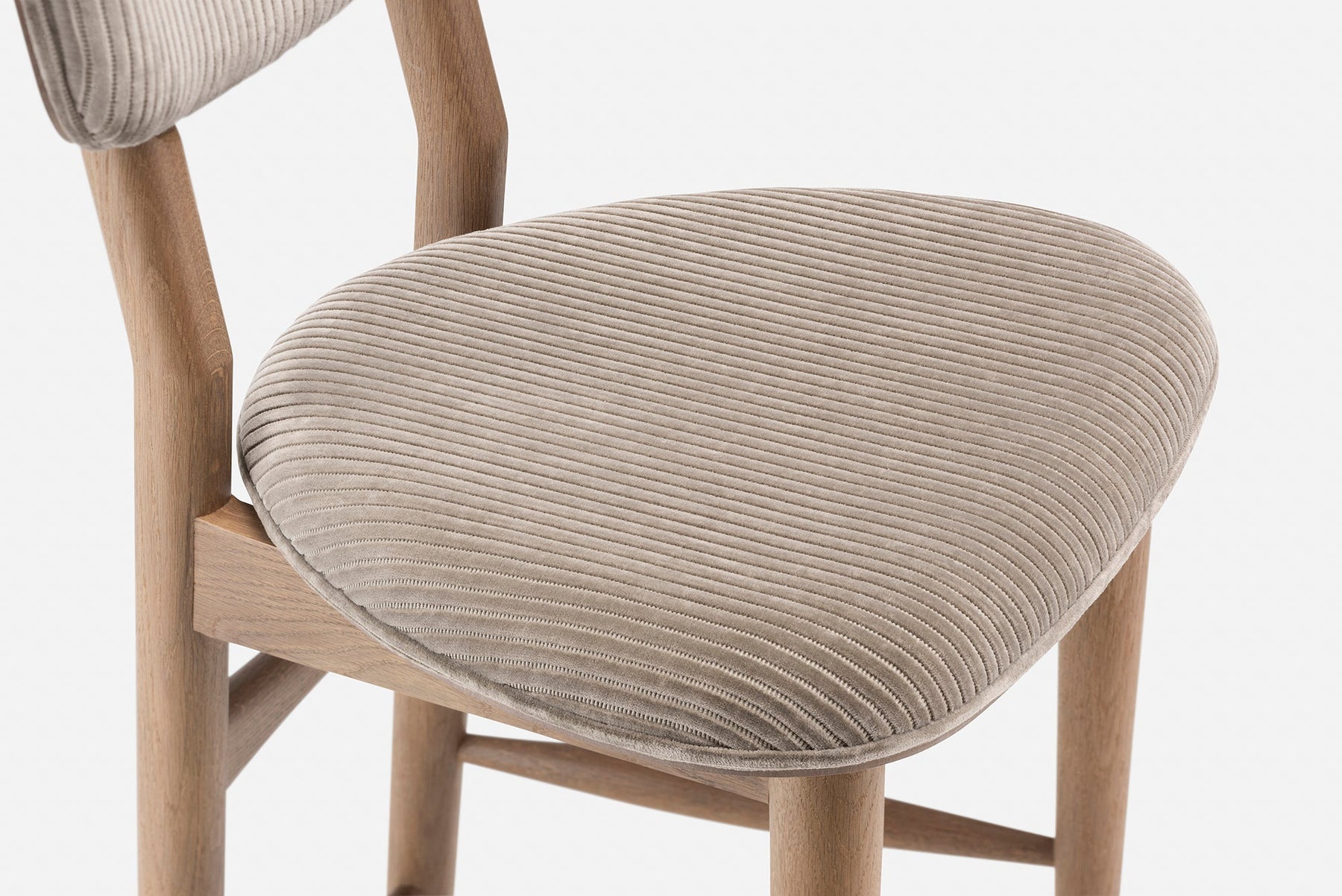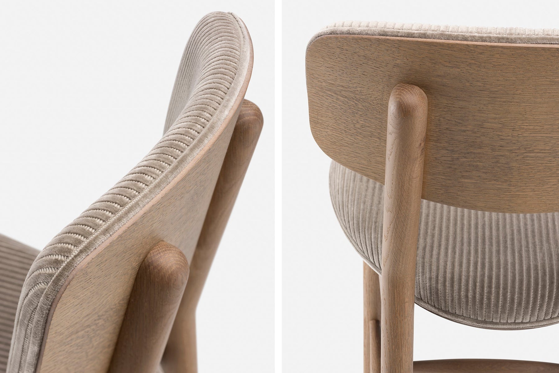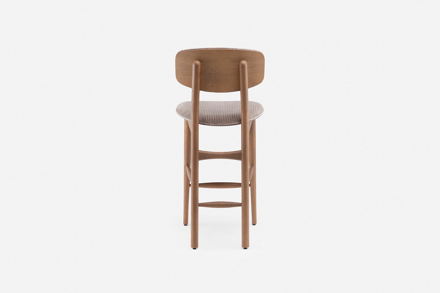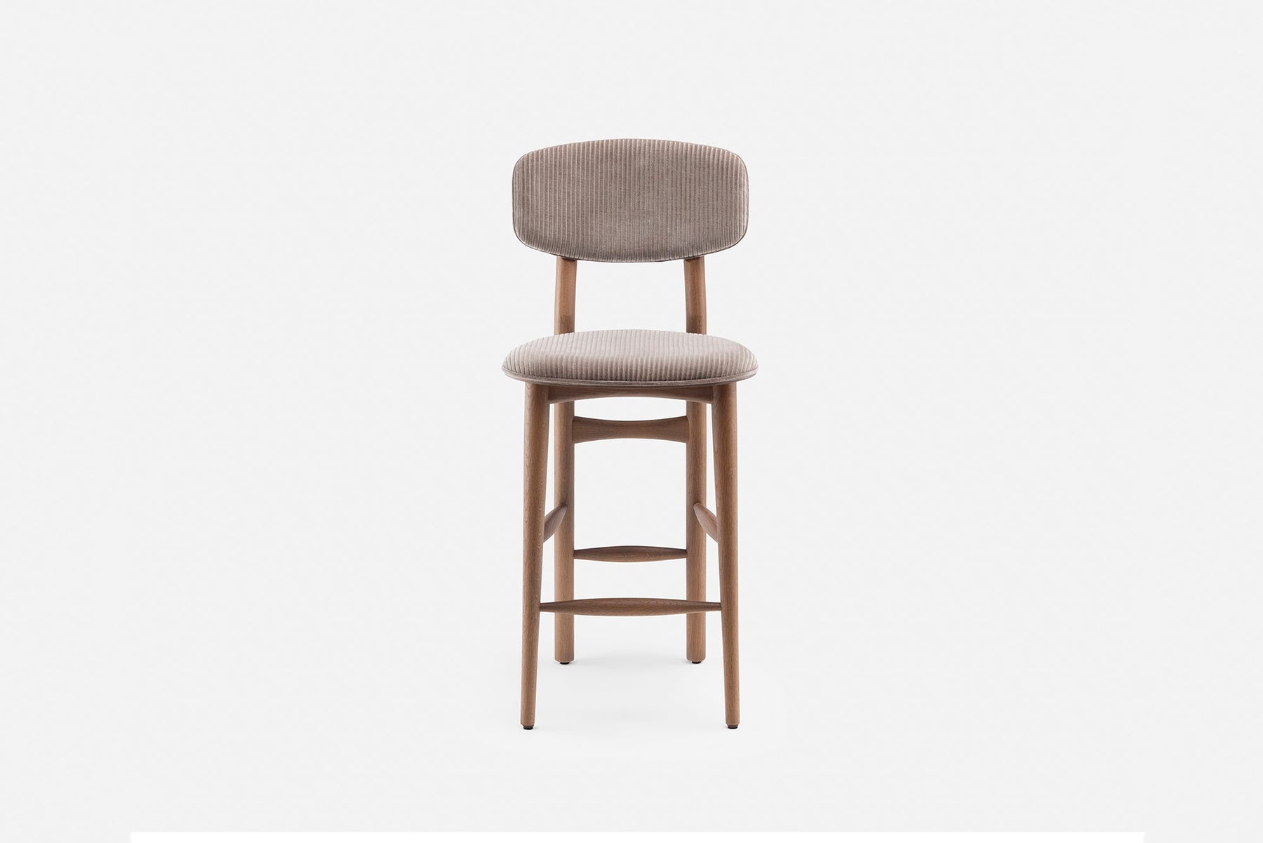 Butterfly is a comfortable and understated bar stool with a timber backrest that recalls the wings of its namesake. With its refined upholstery on the seat and backrest and robust timber frame, it is suitable for a variety of environments.