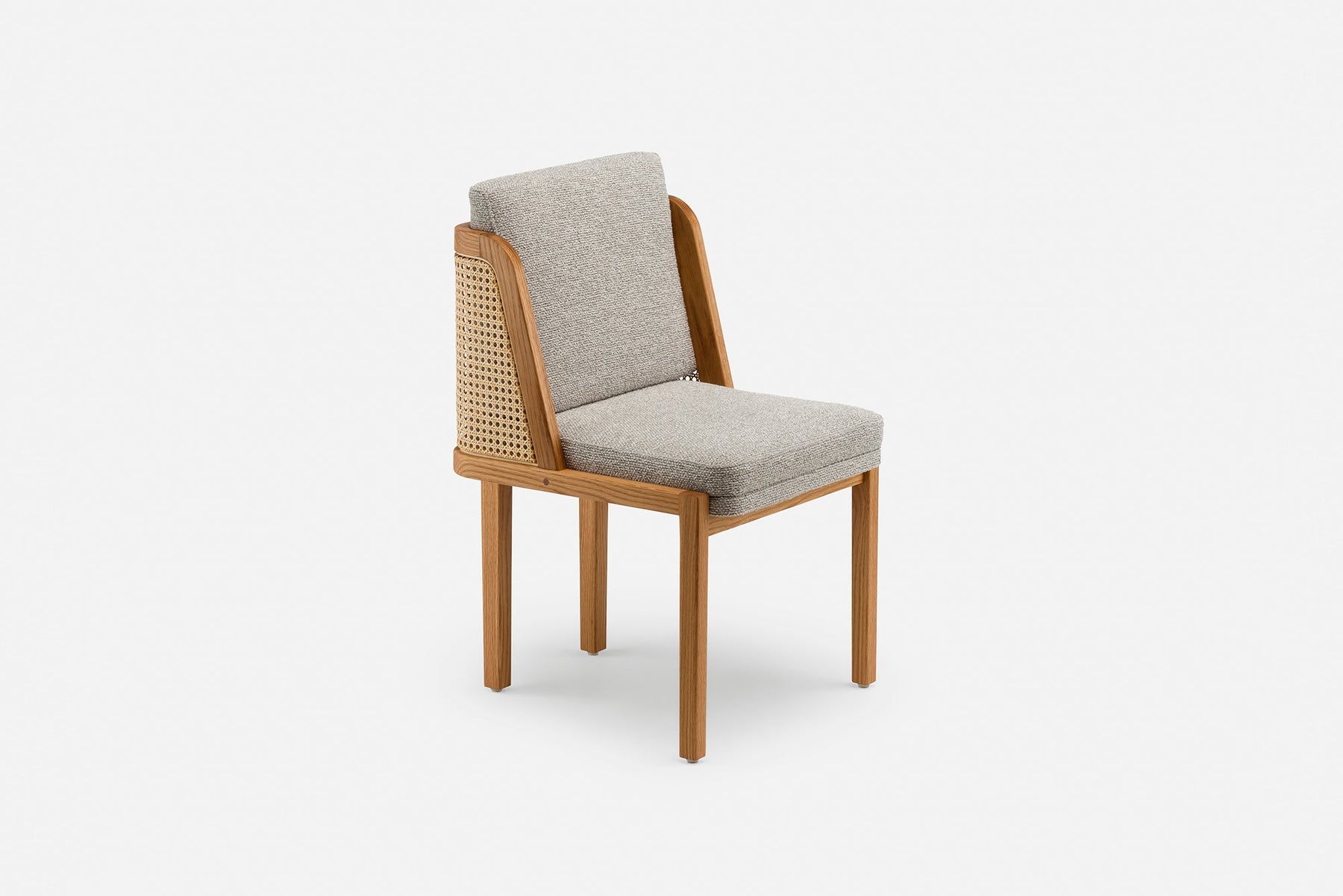 Available in black walnut, white oak, or ash in a range of finishes, and a range of fabric and leather options. Rattan backrest. The rattan finish varies according to the timber/finish chosen. See menus below for further material information.