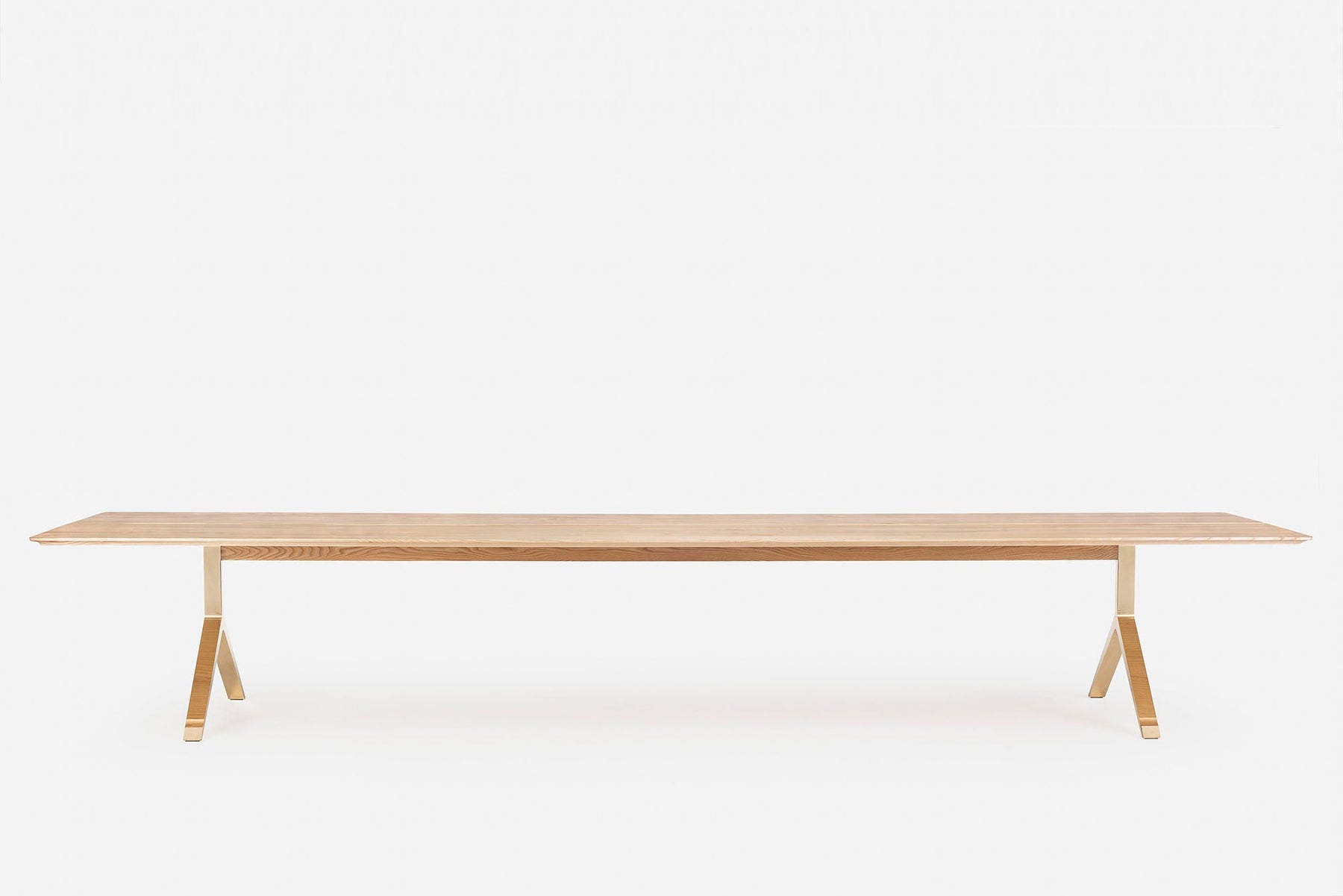 Available in black walnut, white oak, or ash in a range of finishes. Legs and central tabletop detail in black anodised aluminium, or brass polished or brushed. See menus below for further material information.