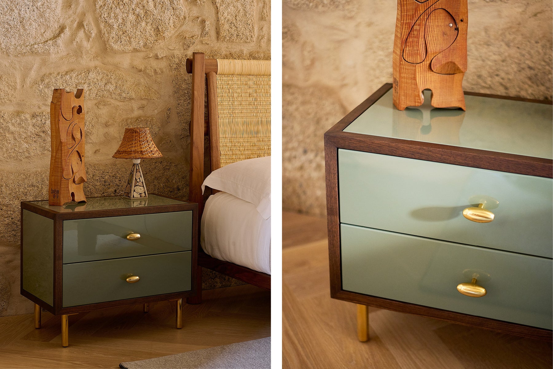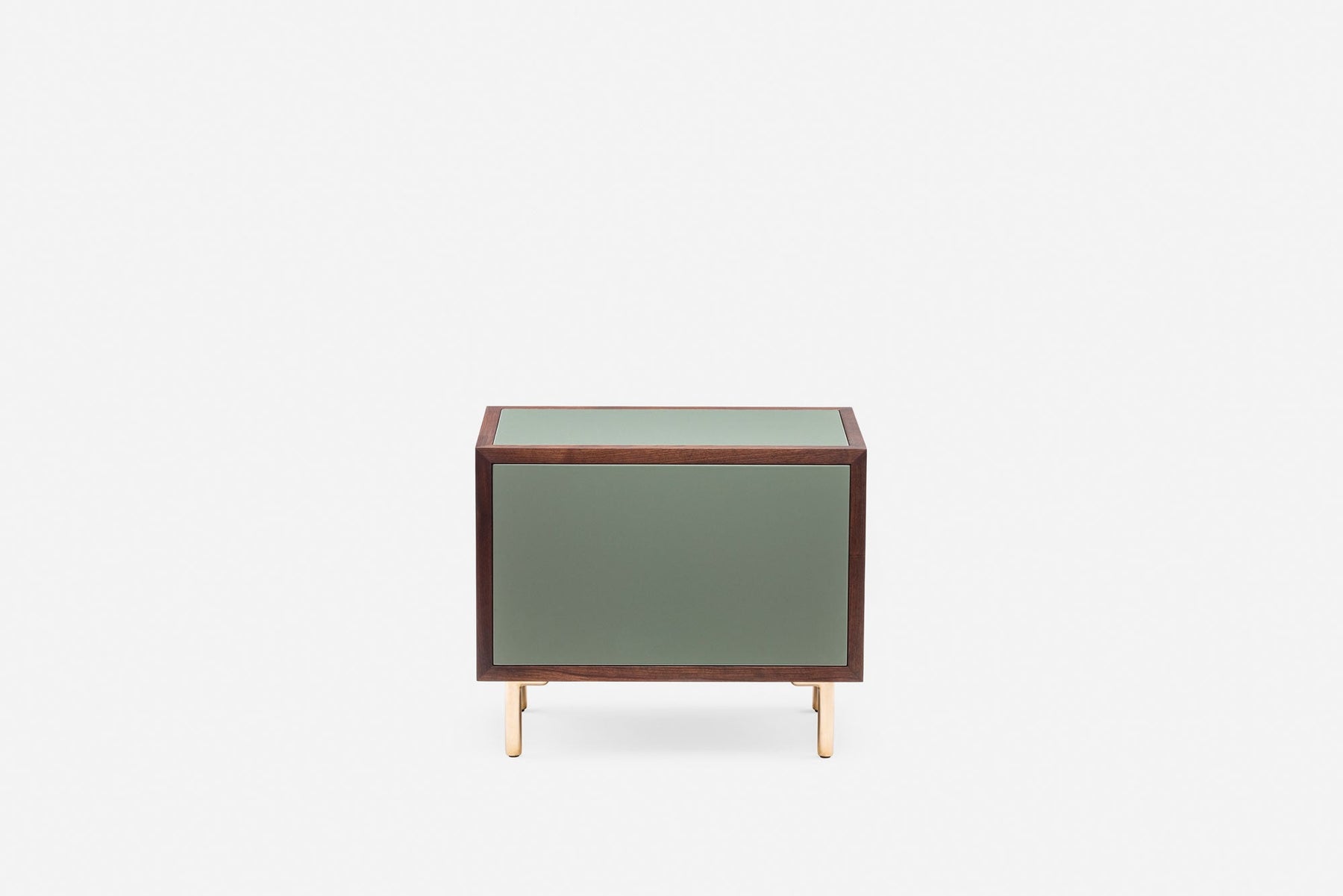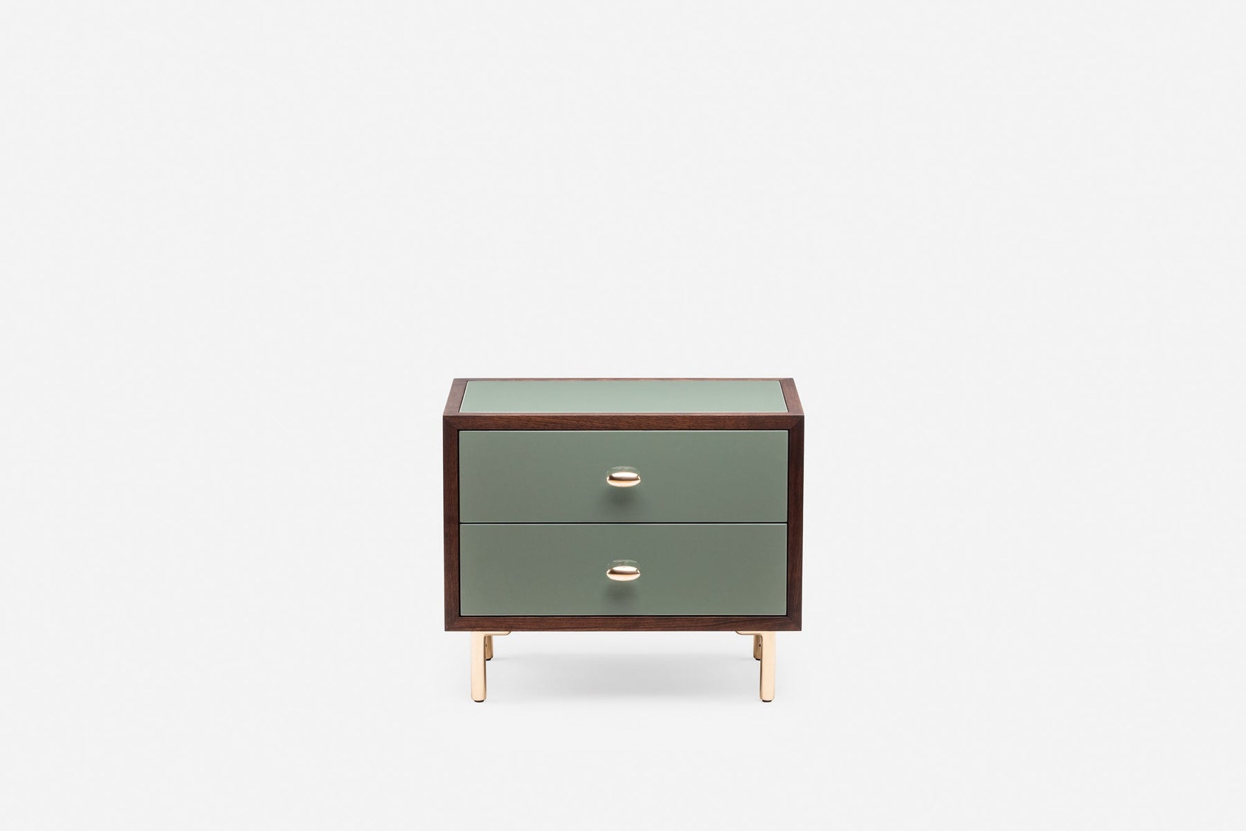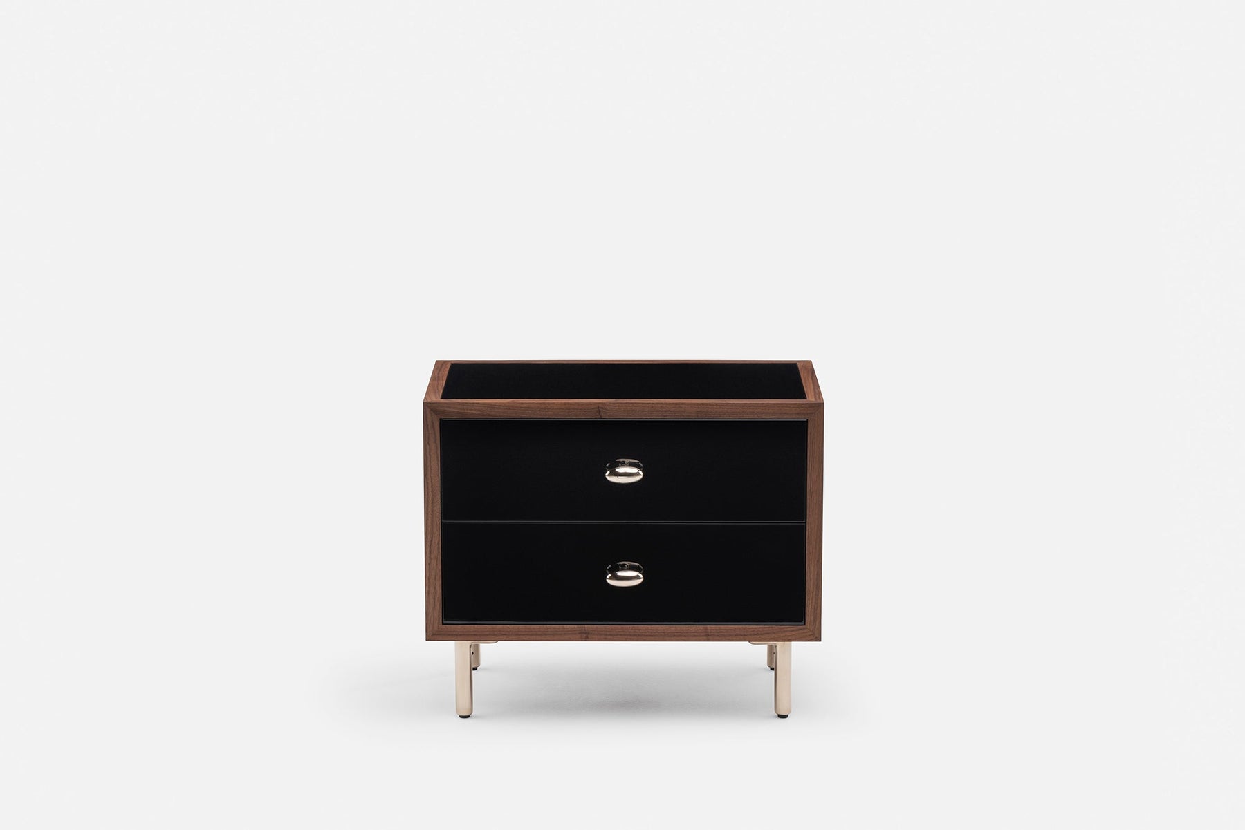Classon Bedside Chest transcends time, its modern form featuring rich detailing that nods to a more traditional American aesthetic. Polished brass drawer pulls and legs elegantly complement the cabinet body available in a range of timbers and finishes and painted hdf.