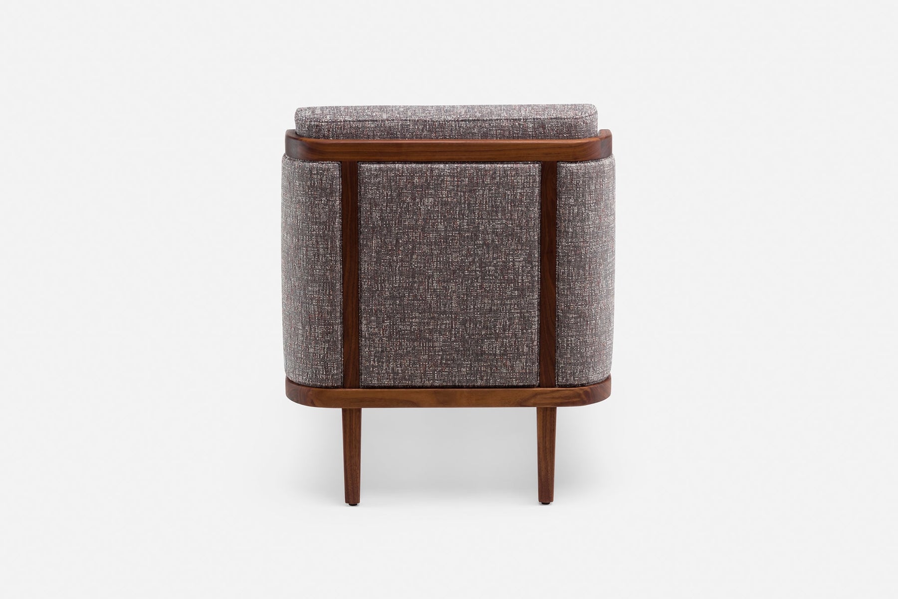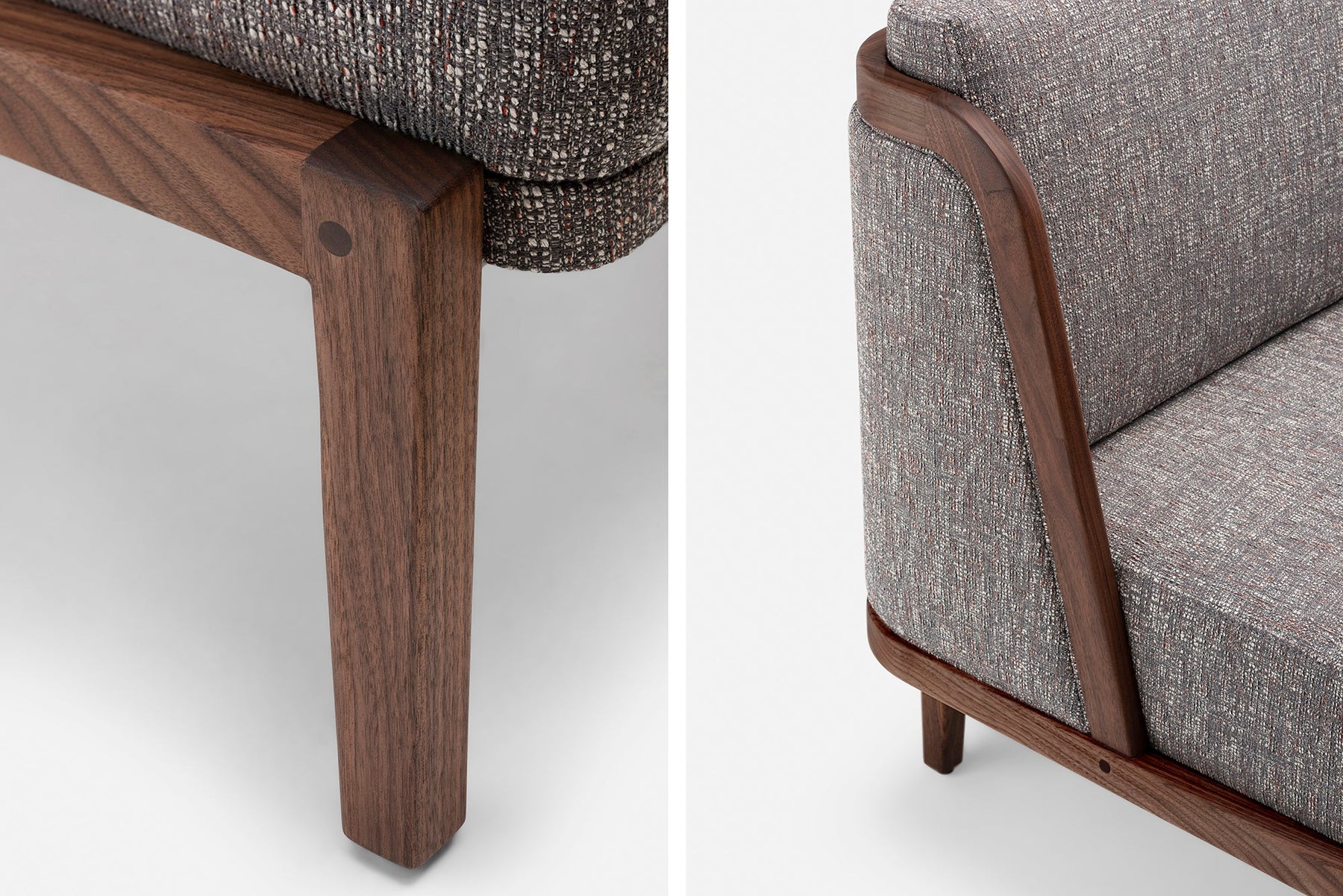 Available in black walnut, white oak, or ash in a range of finishes, and a range of fabric and leather options. See menus below for further material information.
