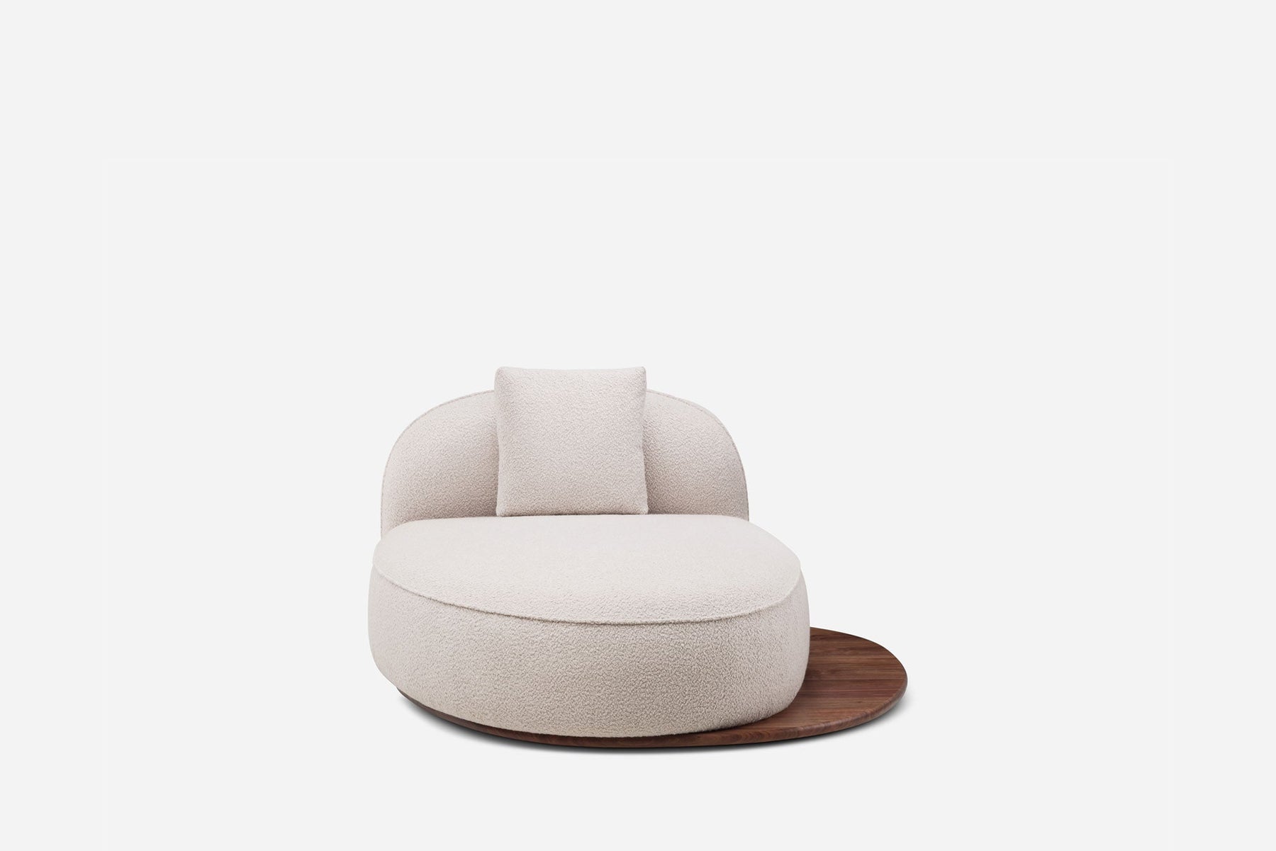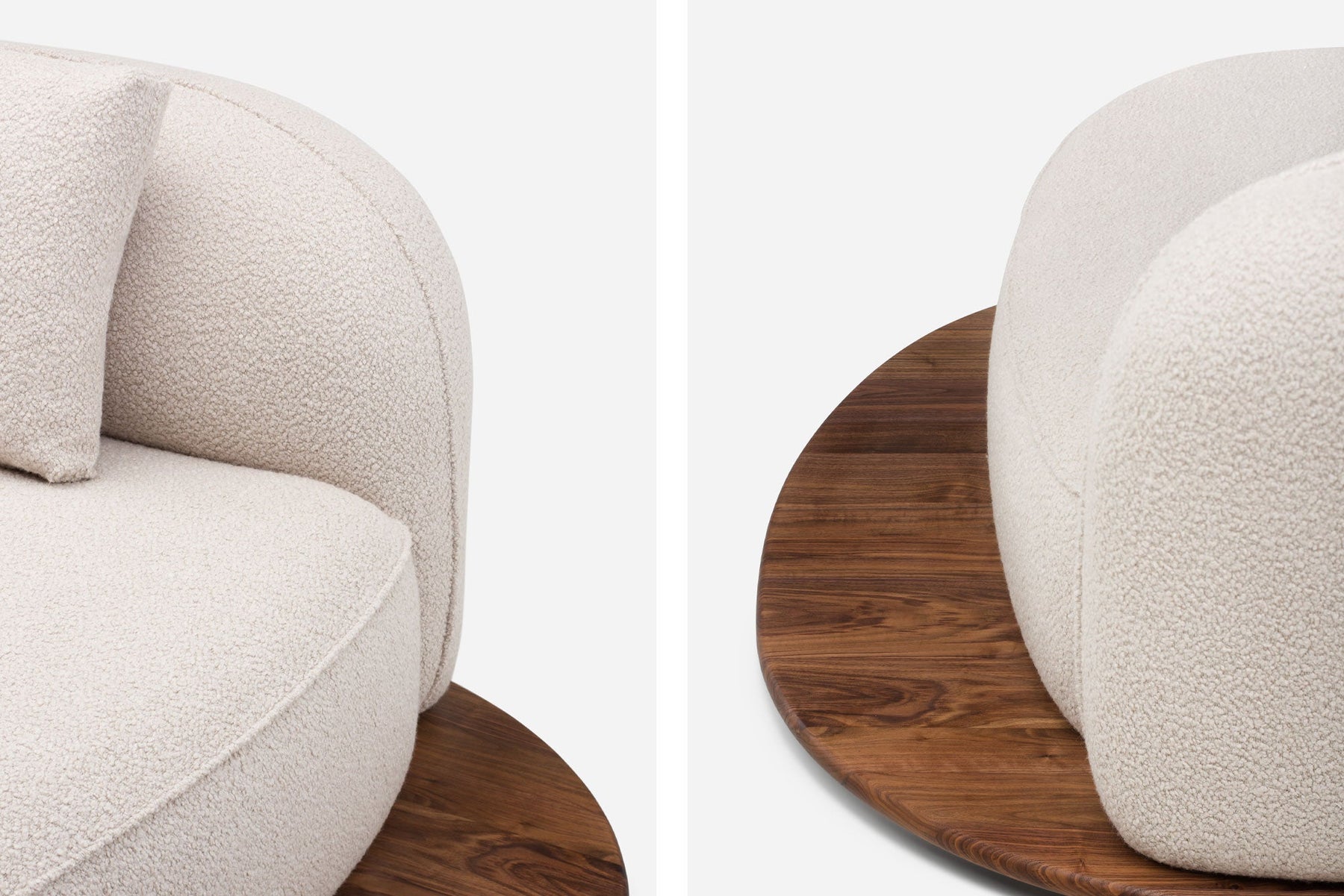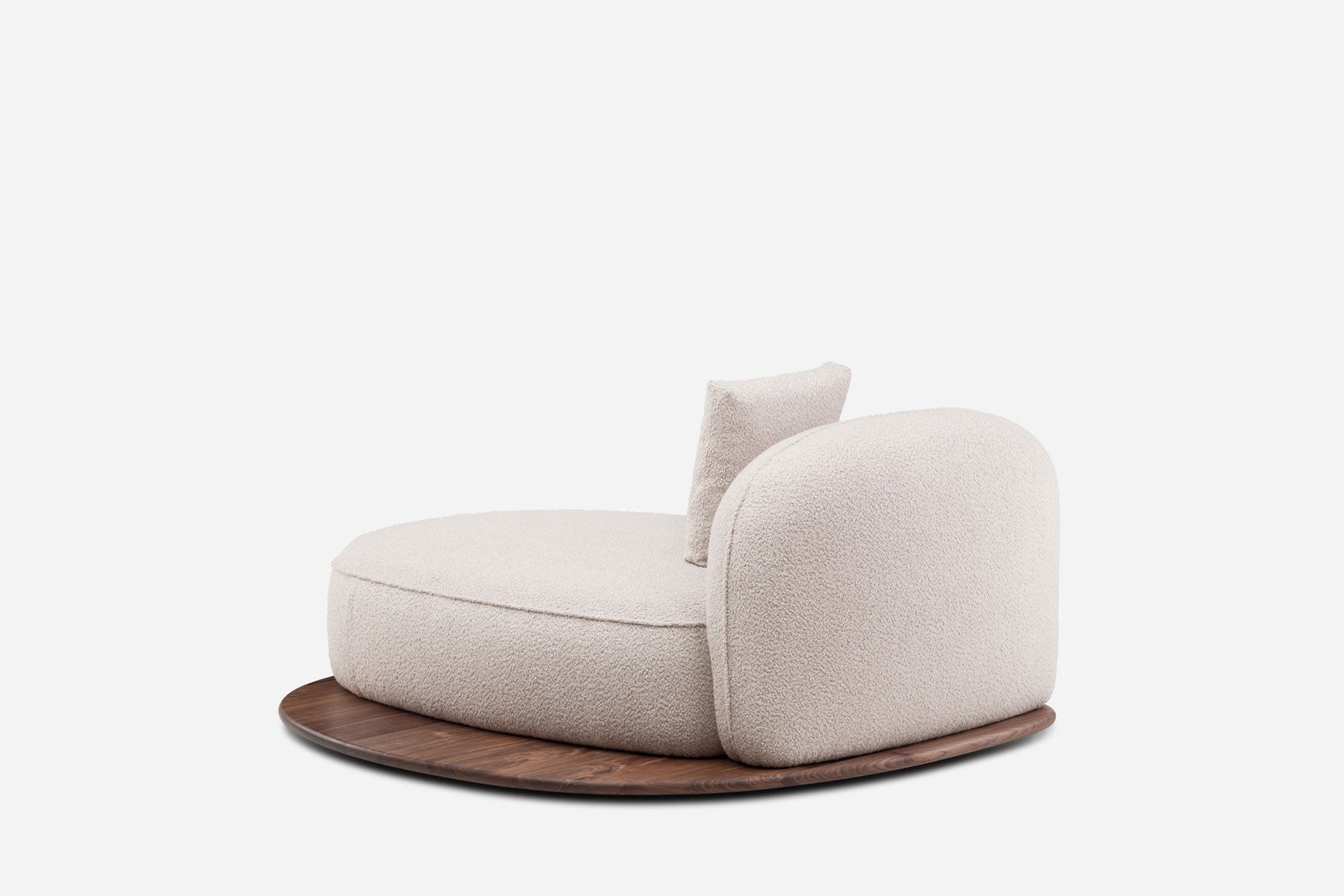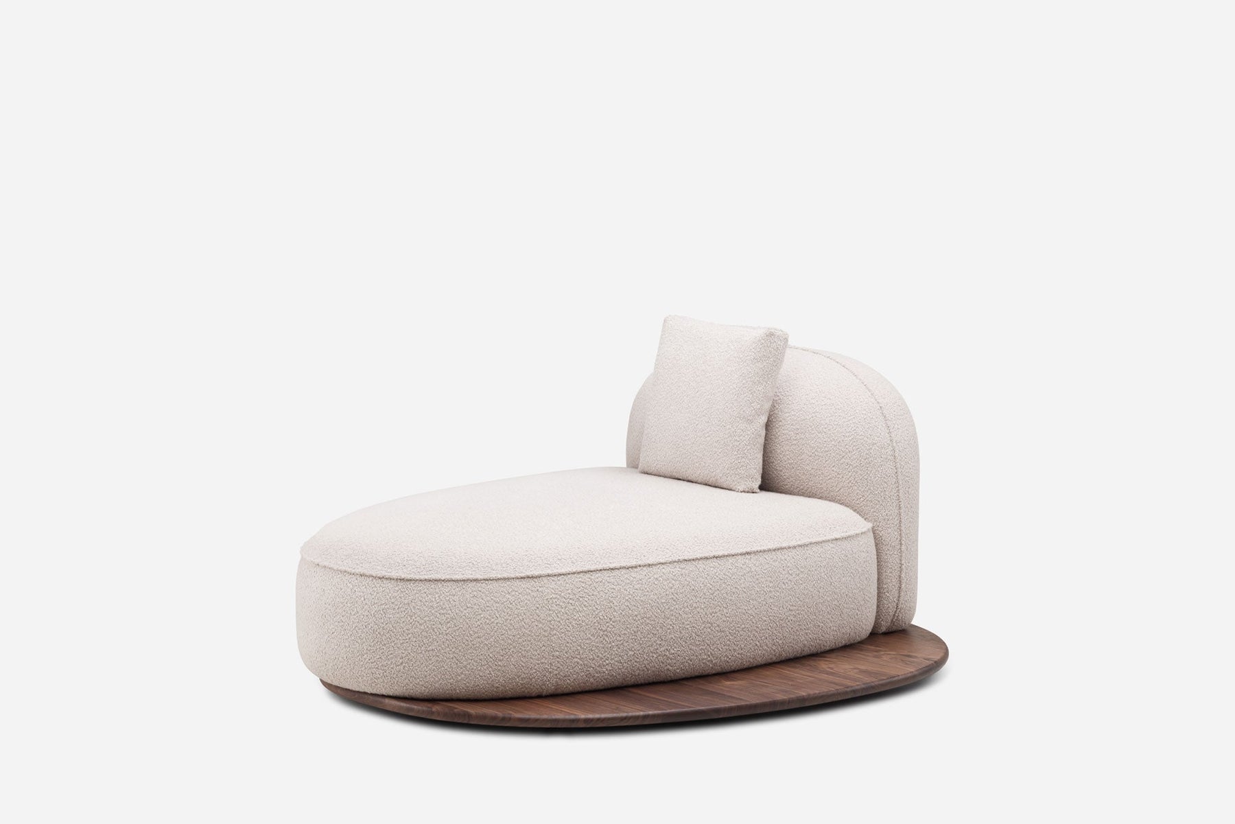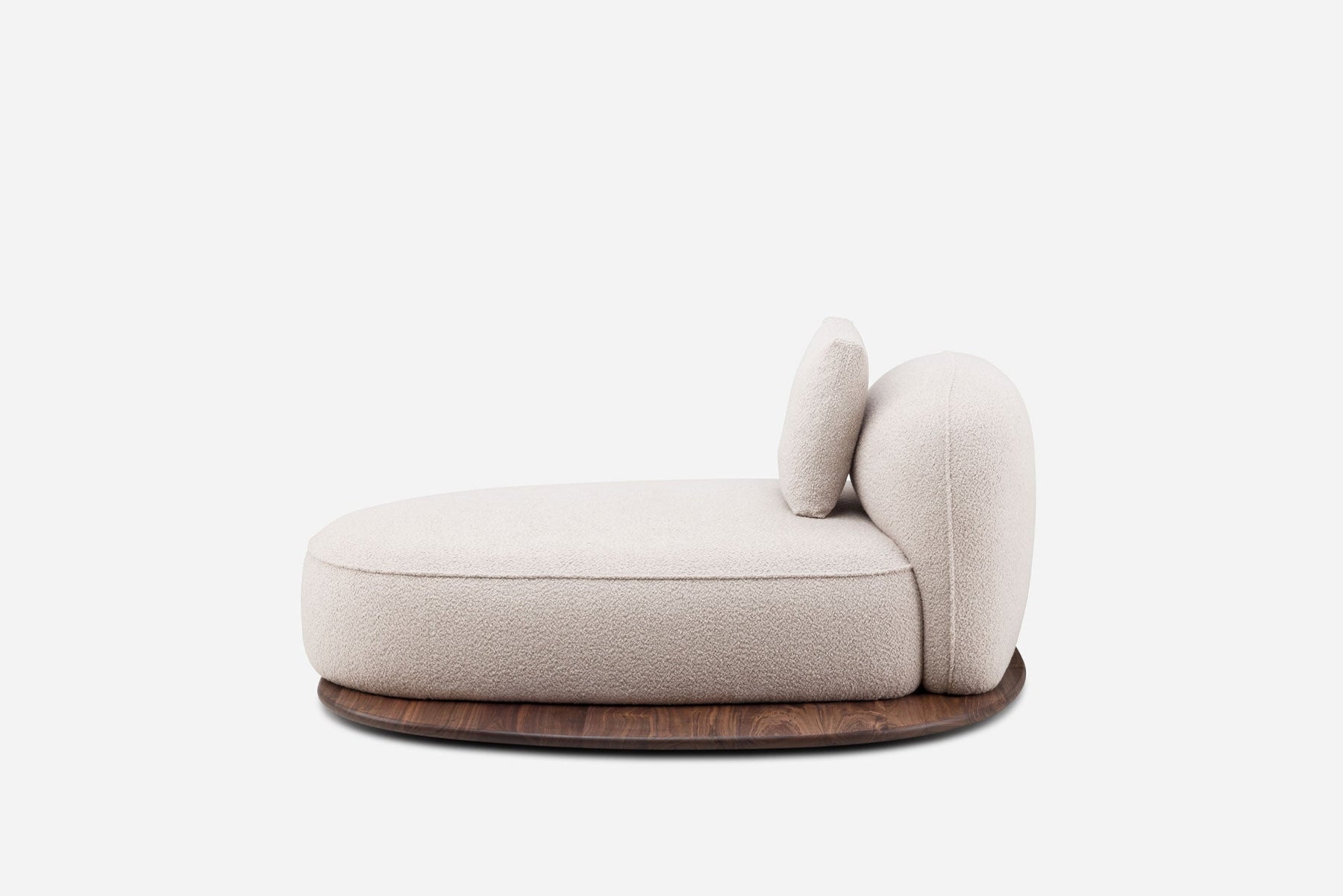 Pico Daybed is part of the Azores collection by Luca Nichetto. The Azores collection comprises sofas and small tables, conceived as islands, allowing for flexible compositions to suit unique spaces. Each piece has a soft, rounded, sculptural shape made from luxurious upholstery and rich solid wood, highlighting the craft of De La Espada.