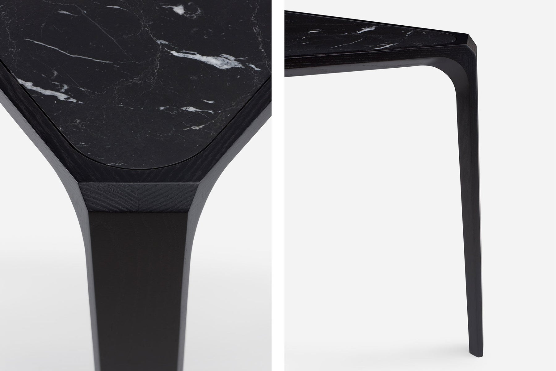 Mary's Side Table, crafted in solid hardwood with a marble top, is substantial yet delicate, sculptural yet highly functional. It was inspired by a visit to the Cathedral of St. Mary of the Assumption in San Francisco; Matthew Hilton was moved by the contrast of the oppressive weight of the concrete structure and the release of the swooping, expansive space within. Mary's Side Table captures this paradox of weight and weightlessness.