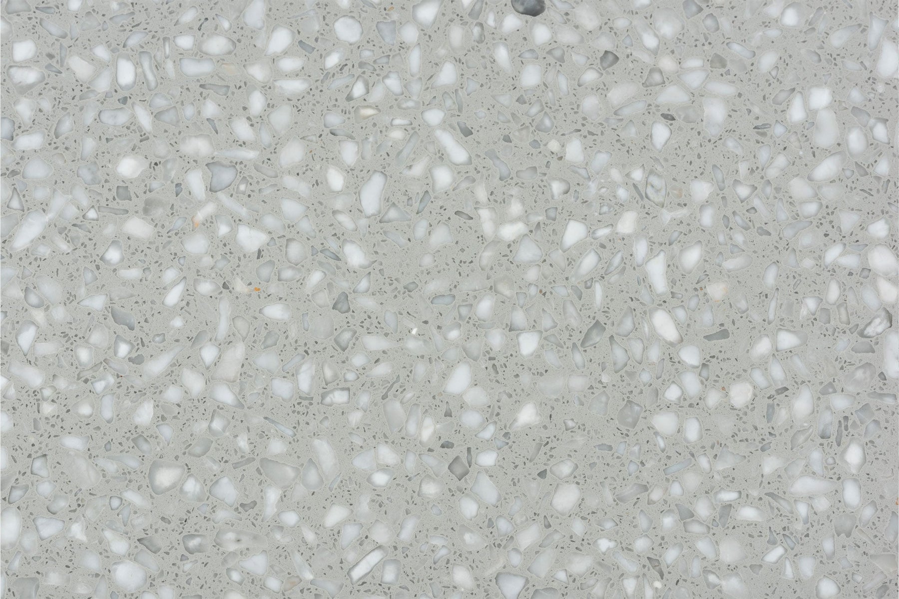 Our terrazzo is made from 93% natural marble and dolomite combined with colouring agents and polyester resin. It is rigorously manufactured for appealing colour and outstanding durability, and is honed to a beautiful matte finish then coated with a sealant for water-repellent protection.