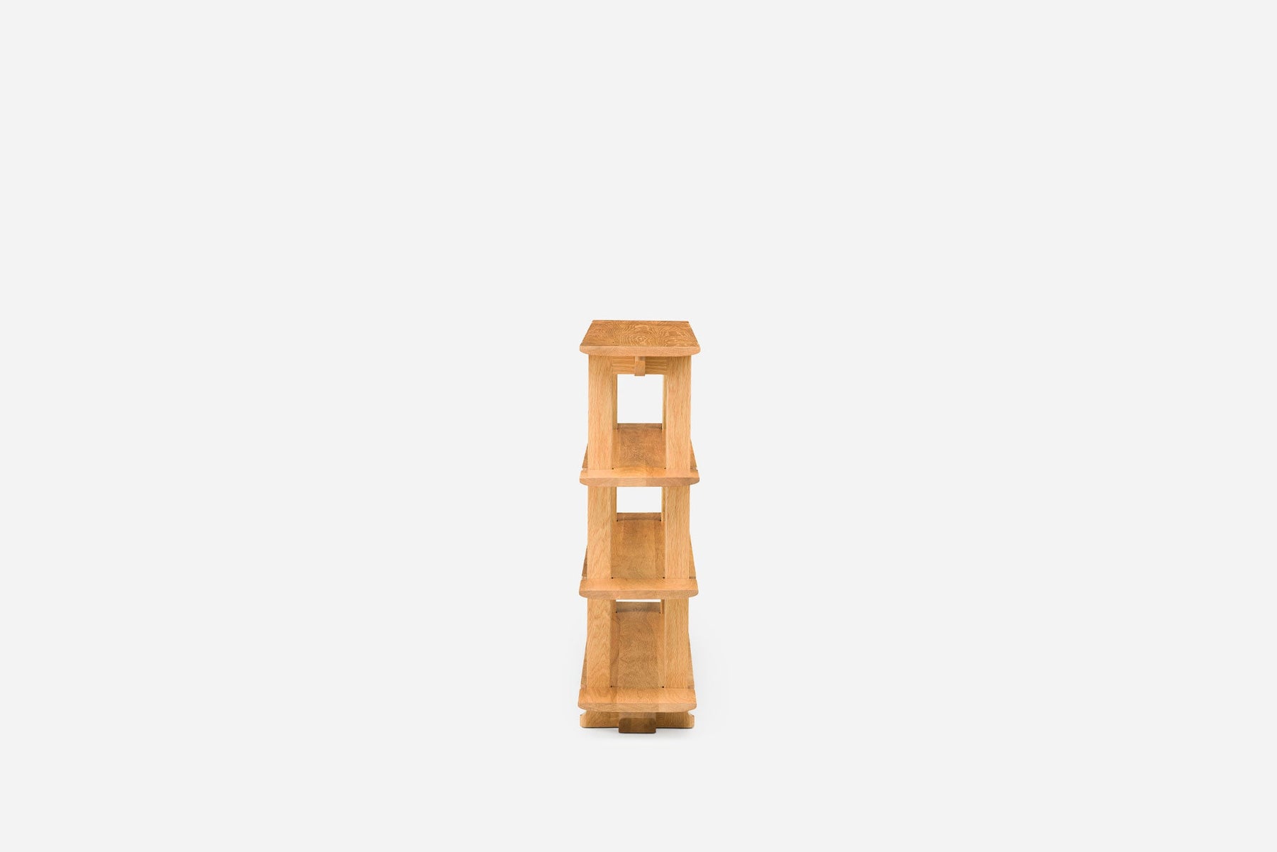 Twenty-Five Shelving Unit emerged from diverse influences ranging from Chinese Ming dynasty shelving to timber sculpting details seen in Brancusi sculptures and Hans Wegner chairs. Designed for flexibility, the Twenty-Five Shelving Unit is available in a range of sizes, and, with the exception of the fixed top and bottom shelves, each shelf is adjustable with a hidden mechanism. Hex keys with beautiful cork handles are stored in the base of the shelving unit, so the shelves may be easily adjusted at any time. Brass brackets allow the unit to be secured to the wall.