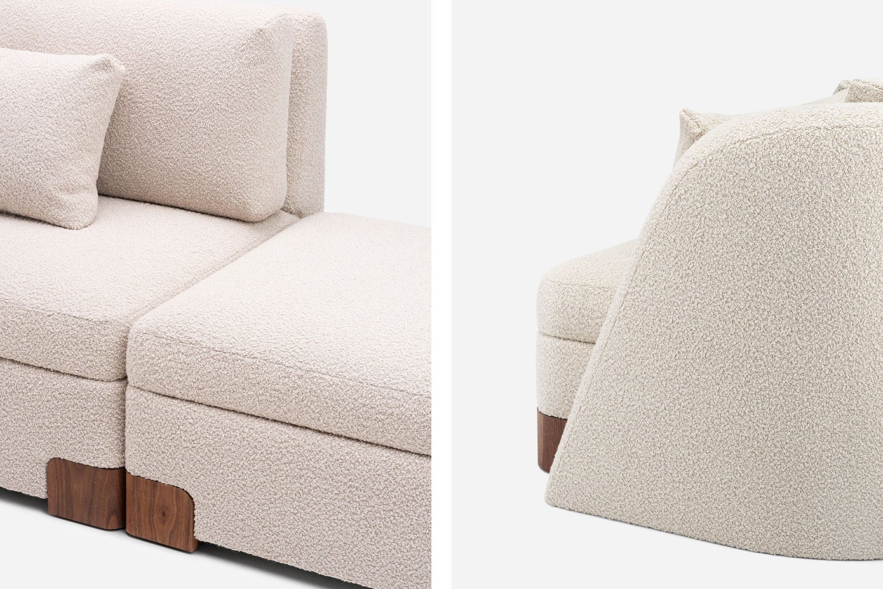 Albireo Sofa by Anthony Guerrée is a flexible seating system with gentle curves and a tall backrest, offering refined style and deep comfort. With just six key modules, Albireo Sofa can achieve numerous configurations with a sense of dynamism. The upholstered form is punctuated by timber feet and optional timber side tables.