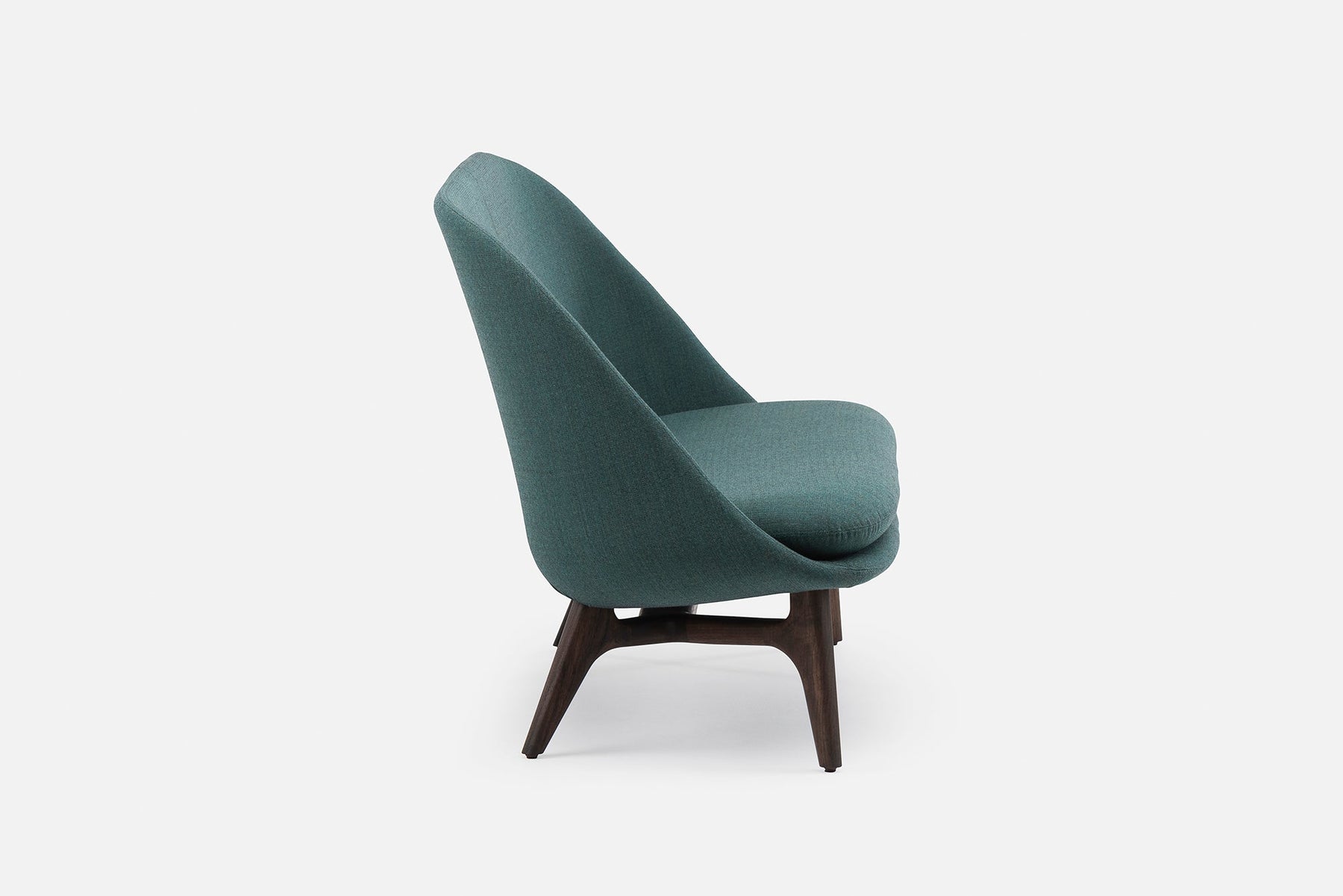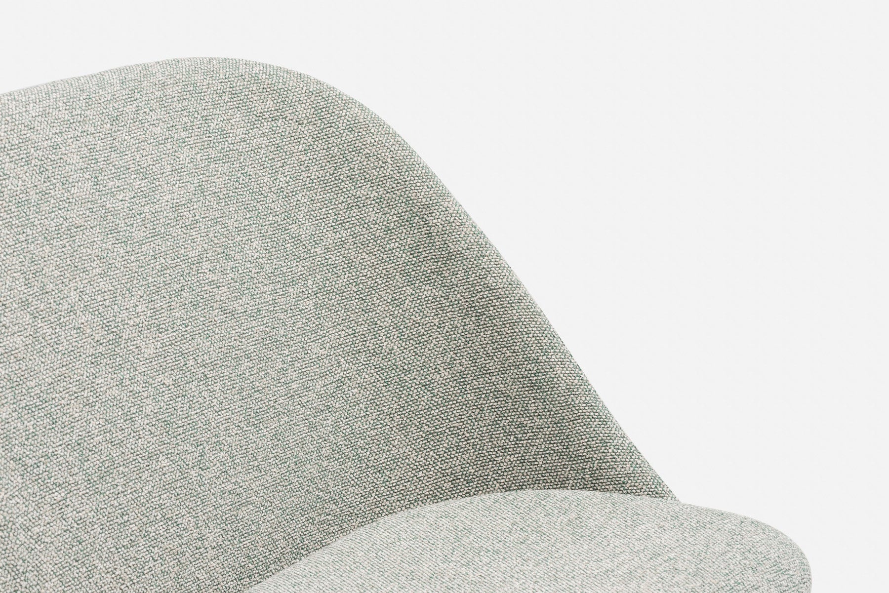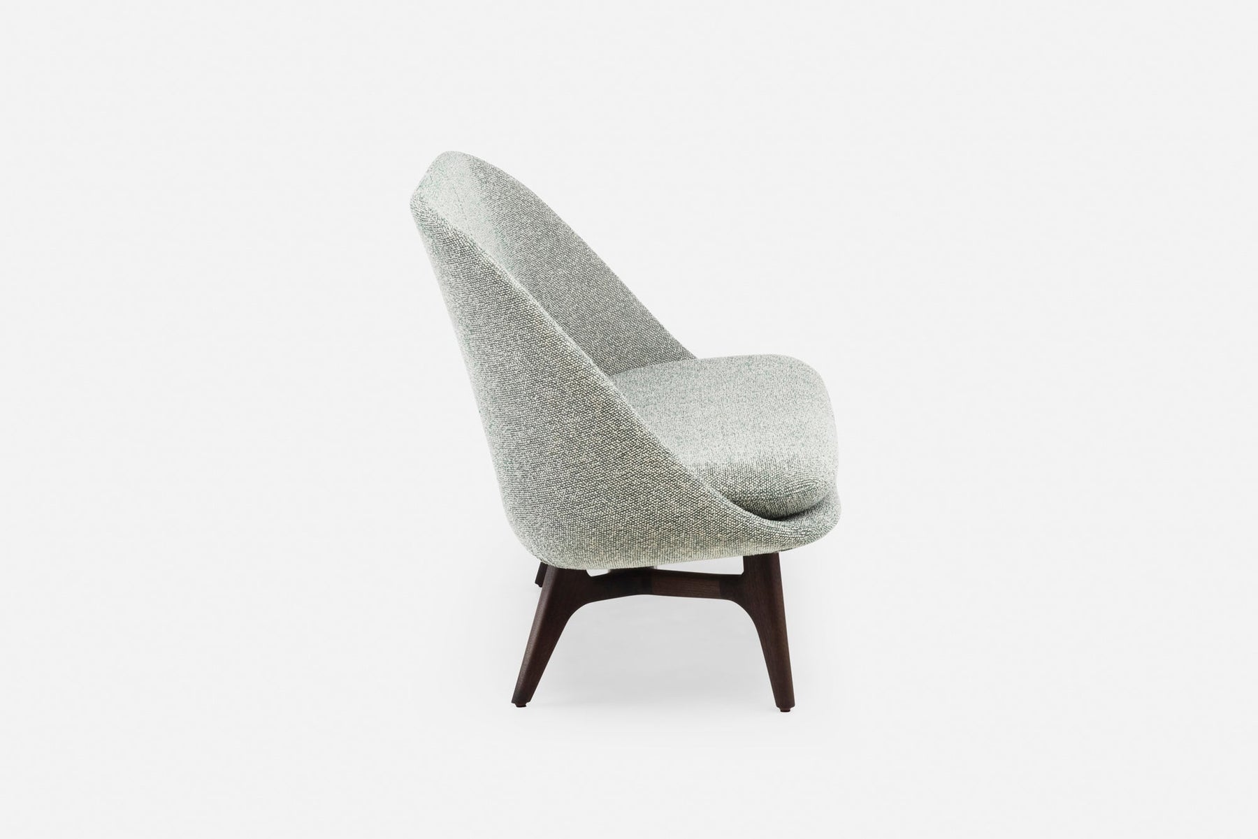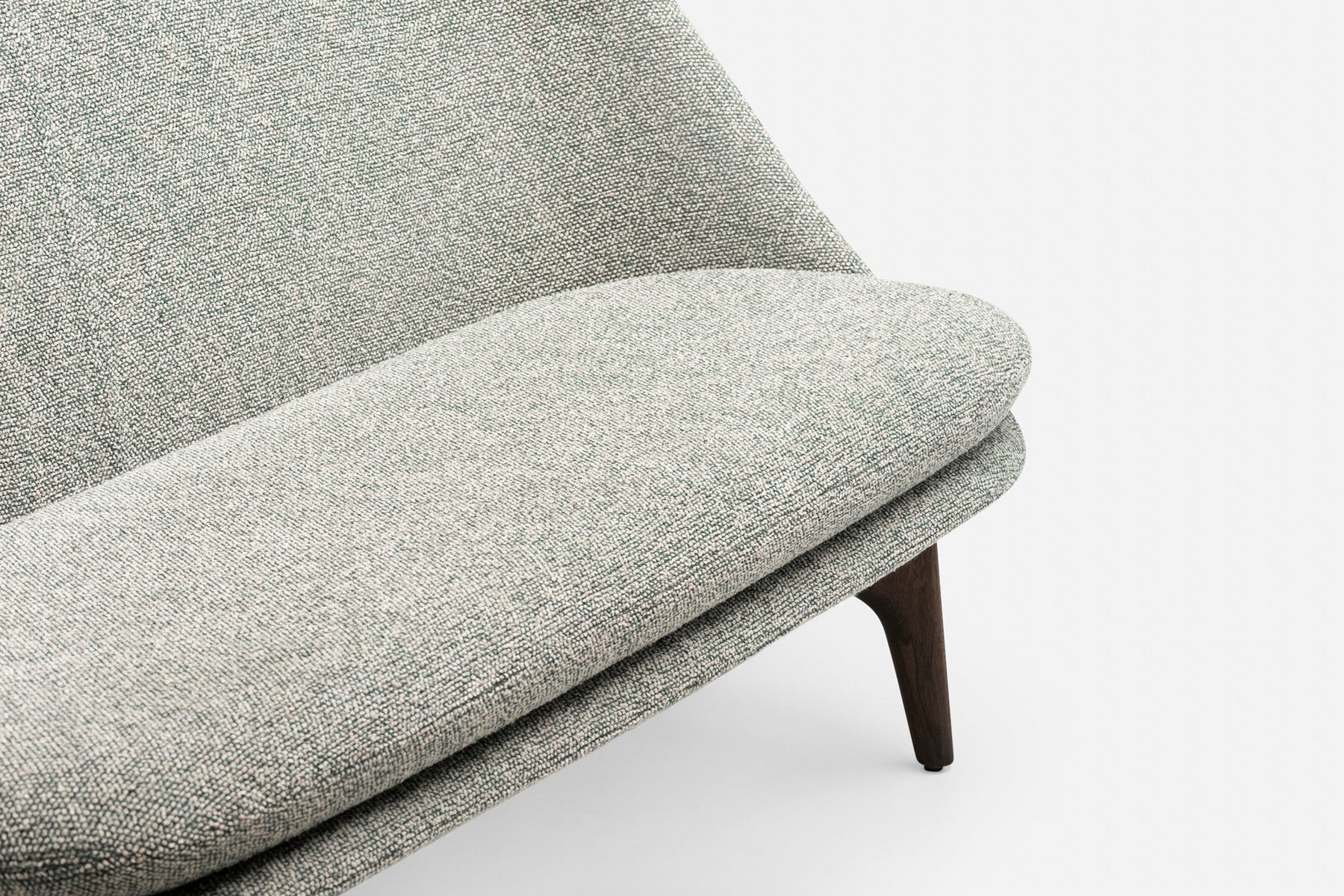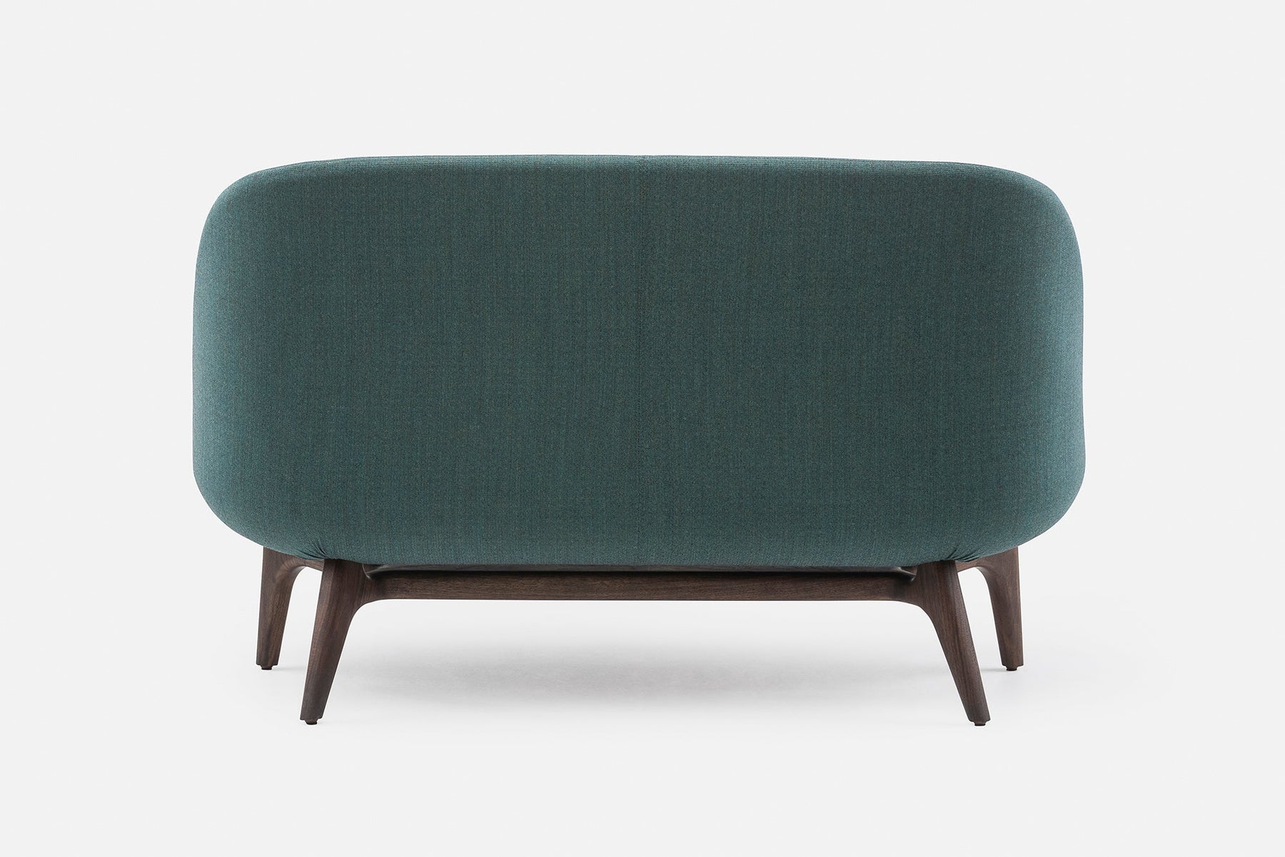 Solo Sofa is part of a series of Solo seating inspired by the Eames Shell Chair. An upholstered shell that hugs the sitting body to create a microcosmic universe for the person, becoming an object of shelter and refuge, where the person can be “solo” and undisturbed while being hugged in this position.