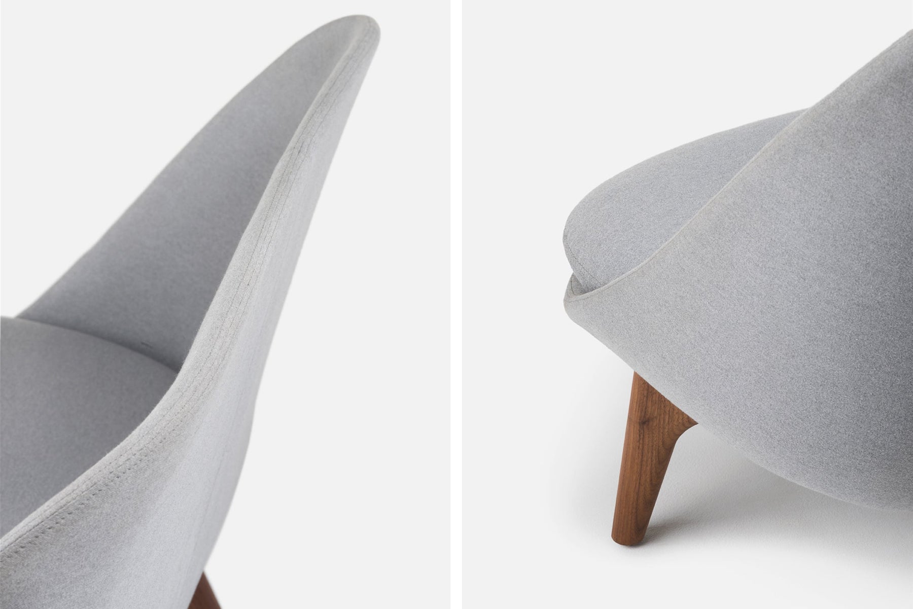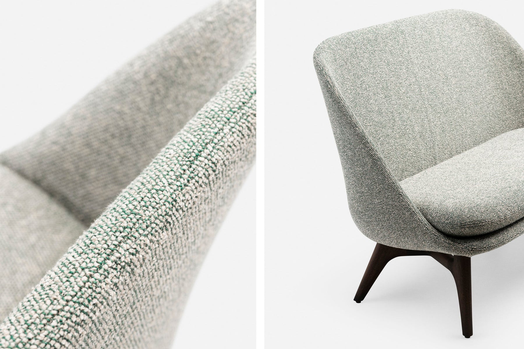 Available in black walnut, white oak, or ash in a range of finishes, and a range of fabric and leather options. NOTE: This product is not available in Harald fabric. See menus below for further material information.