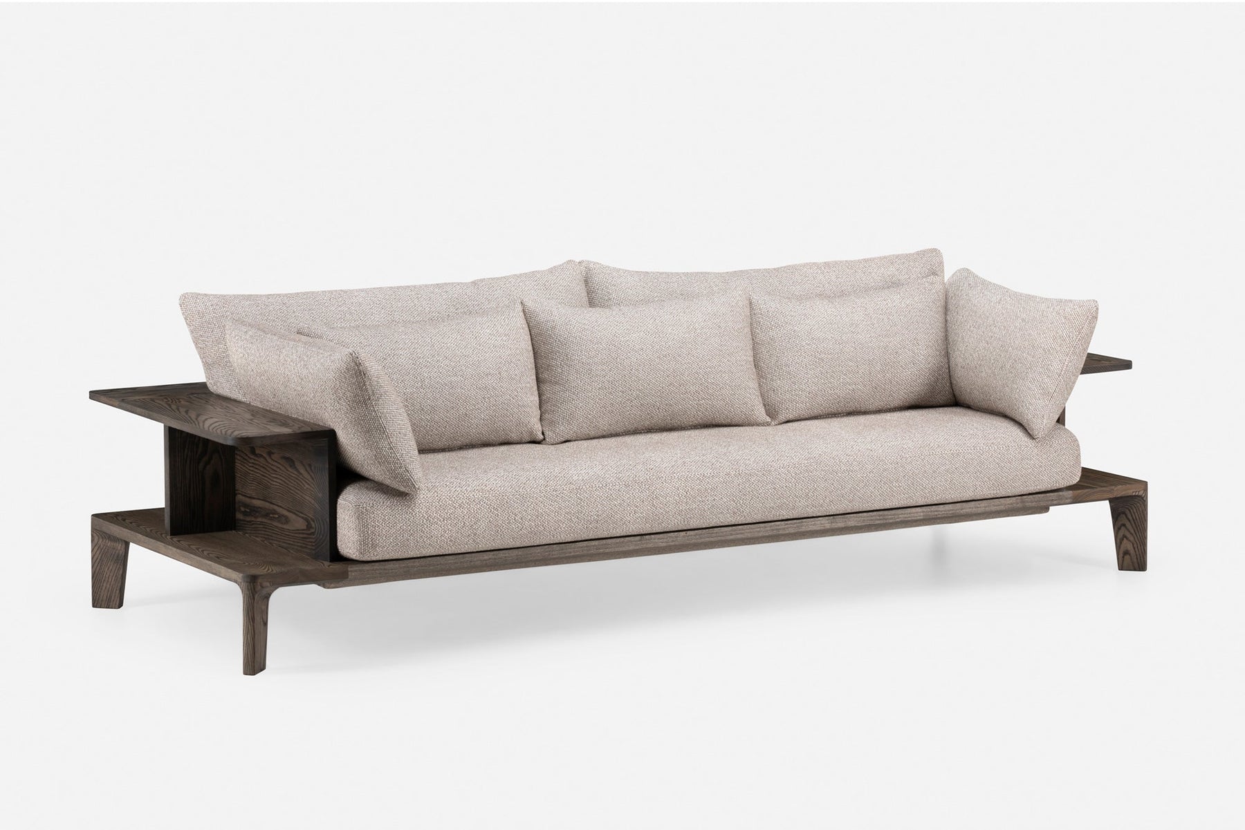 Opium beds for communal lounging have been in China since the Tang Dynasty. Neri&Hu took this historic typology and updated it to create Platform, a contemporary sofa with a simple profile. Deep arms form two useful shelves, as well as side tables for books or a cup of tea.