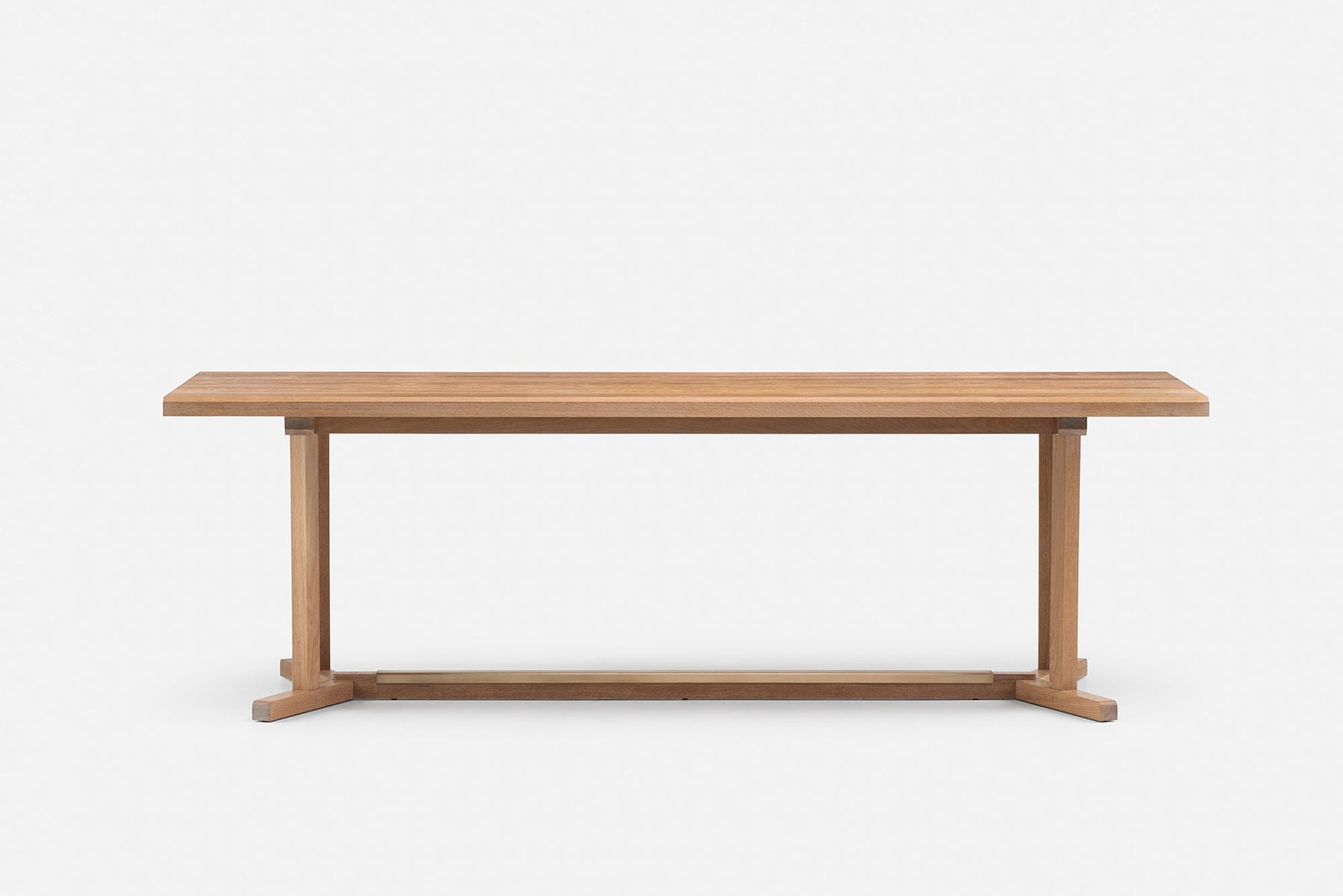 Timber is sustainable solid wood from North America or Europe, offering long-term repairability of the surface. Natural colour and grain variations in every plank make each piece an individual. Traditional wood joinery bonded with wood glue ensures structural integrity. All finishes are non-toxic and applied by hand, sprayed or rubbed.