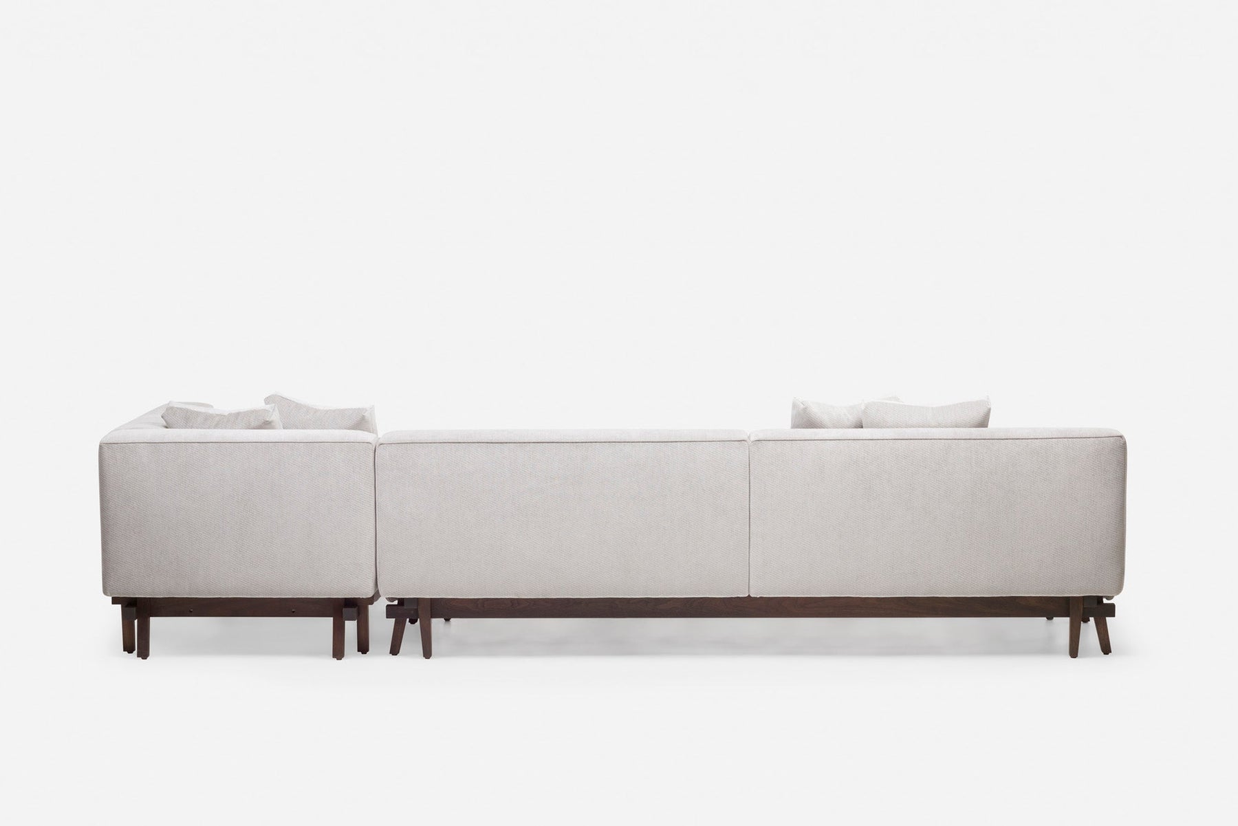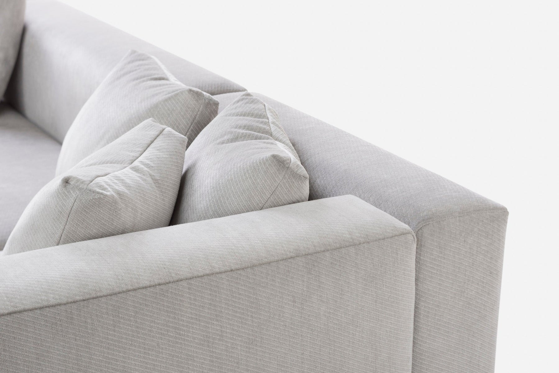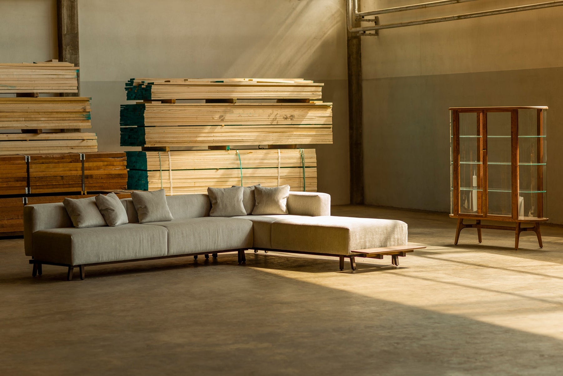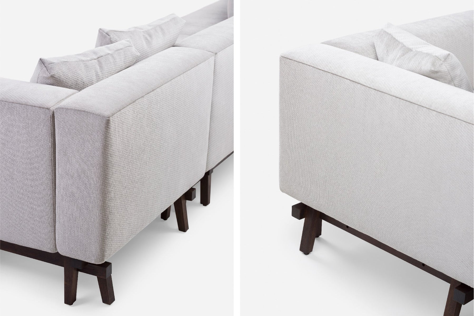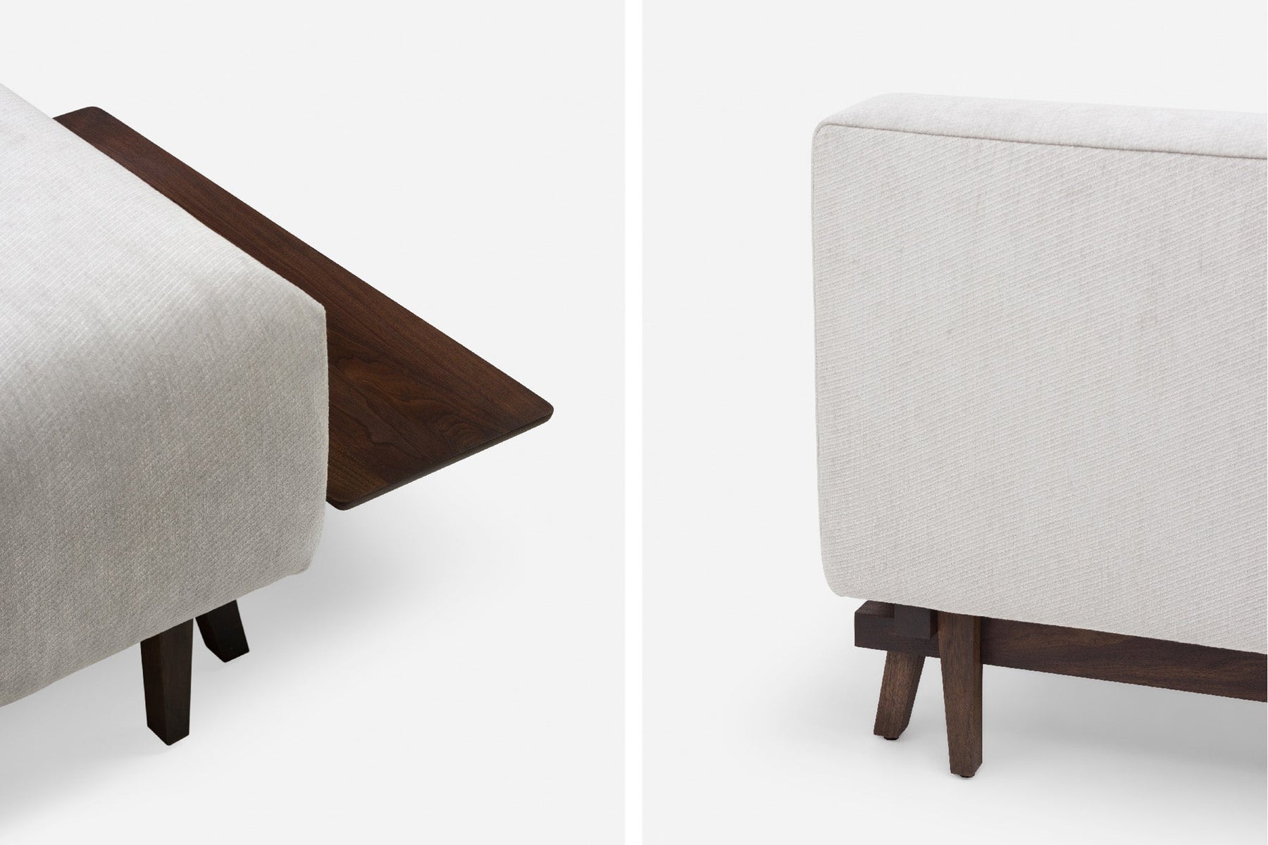 Sofa Eight is a continuation of Neri&Hu’s exploration of an expressive tectonic language. The main supporting element of the sofa is a traditional wood joinery assemblage of stacking members in the X, Y, and Z-axes, pinned together to form a structural base. The cushioned seating utilises memory foam for comfort while maintaining clean, firm lines.