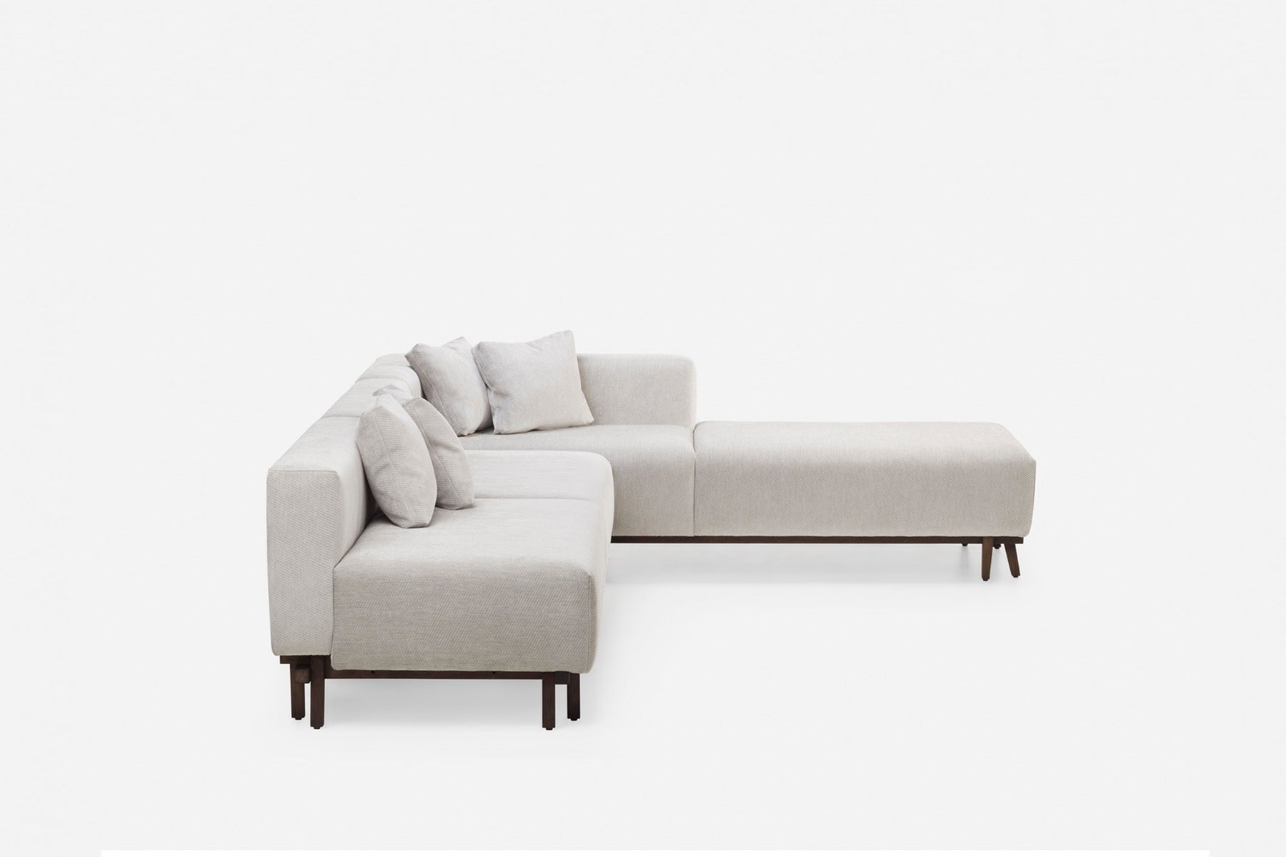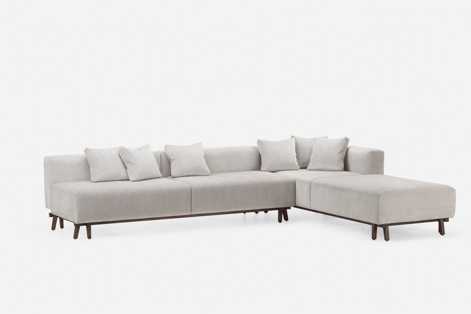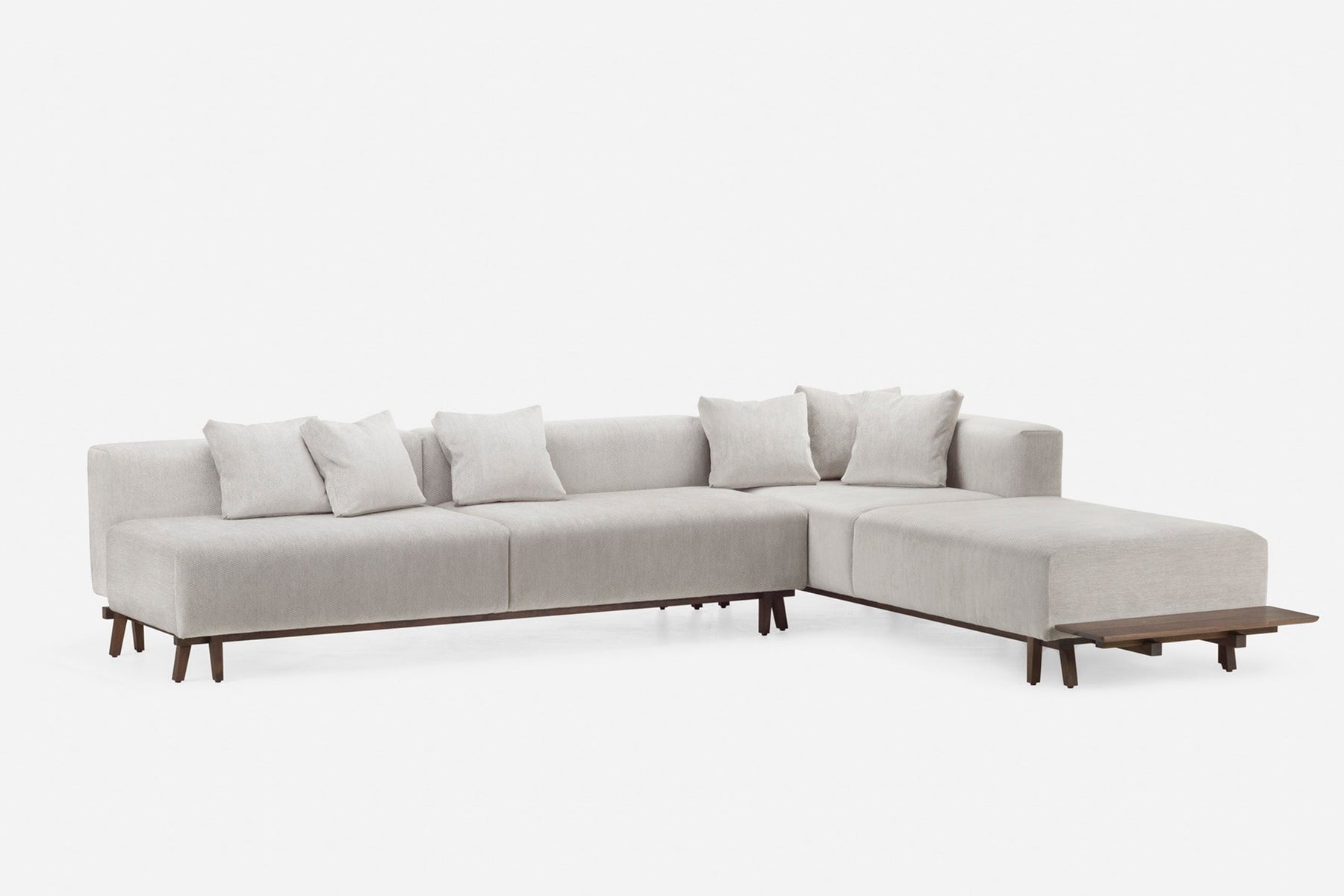 Sofa Eight, a modular sofa system comprising five key modules including a timber side table, allows for almost limitless possible configurations.