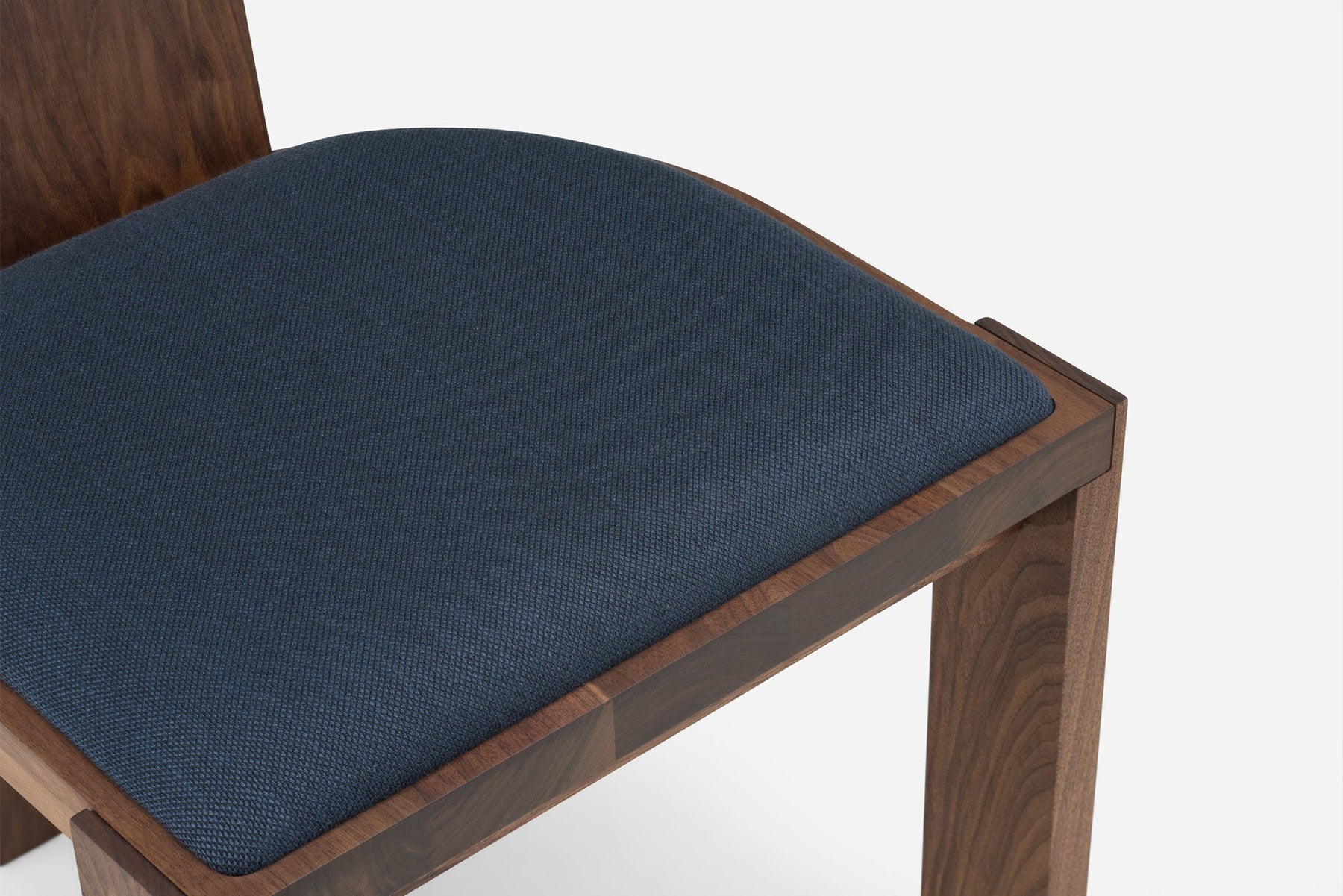 Available in black walnut, white oak, or ash in a range of finishes, and a range of fabric and leather options. See menus below for further material information.